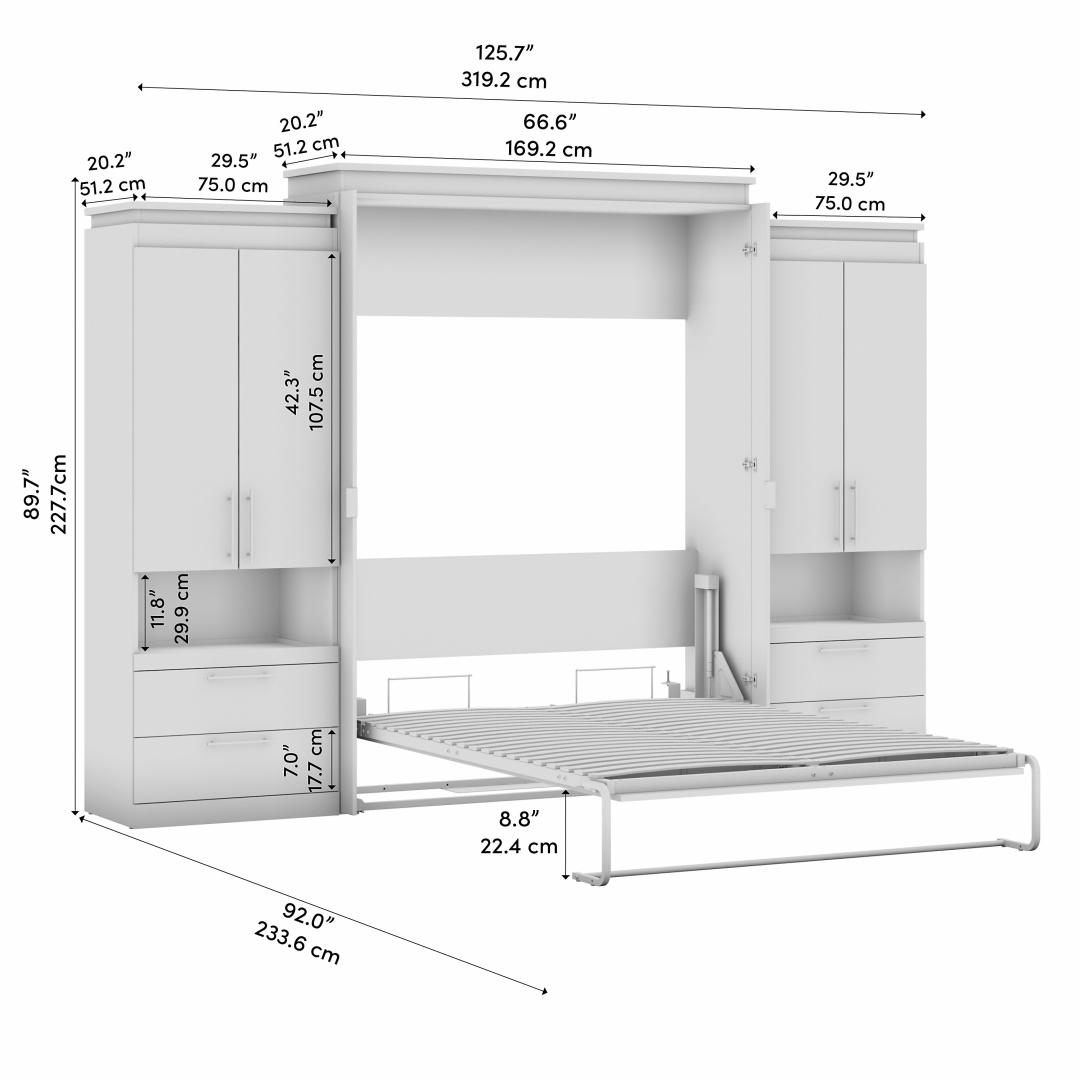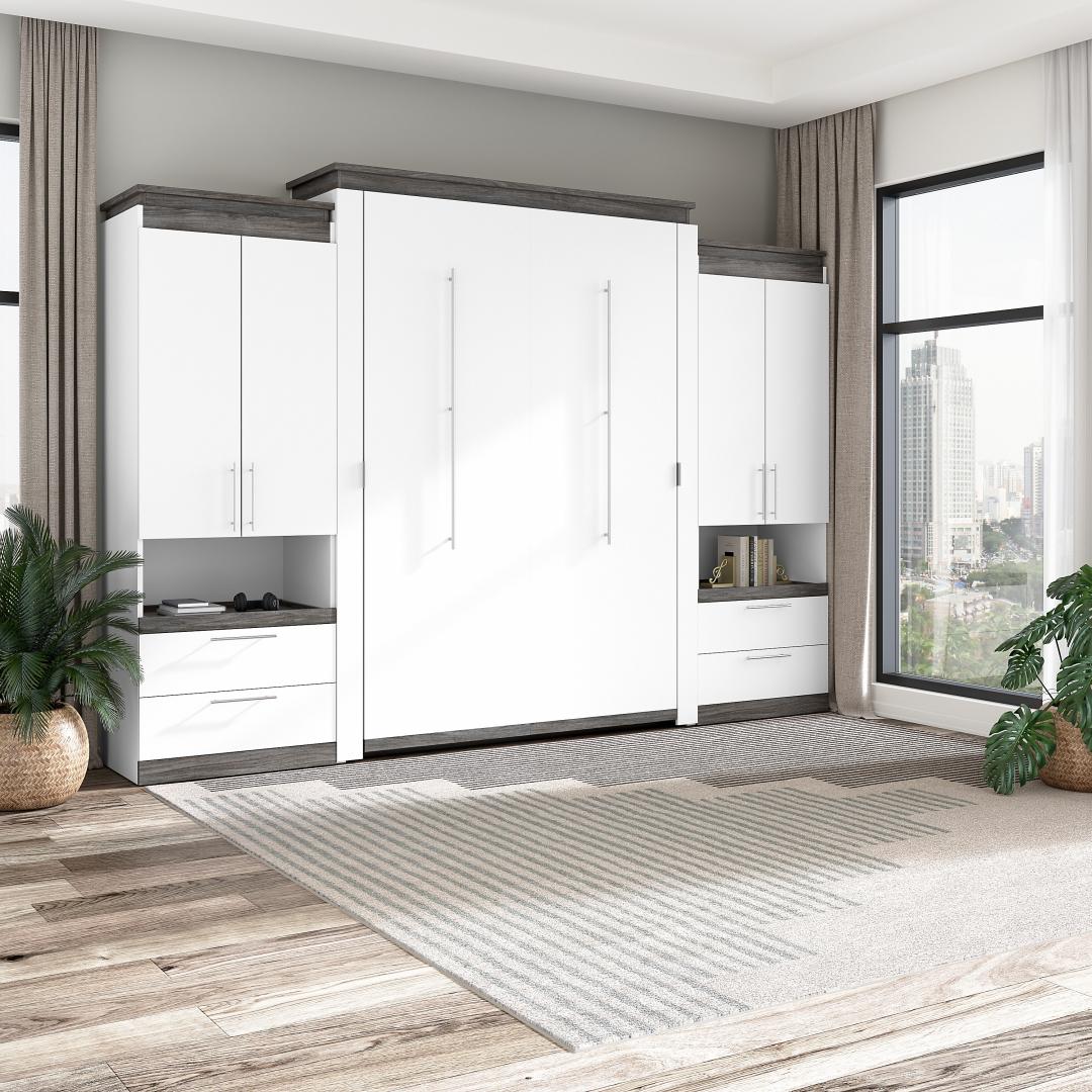 Queen Murphy Bed with Storage Cabinets and Pull-Out Shelves (126W)