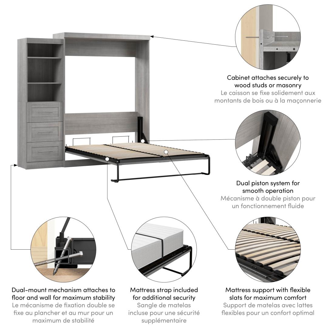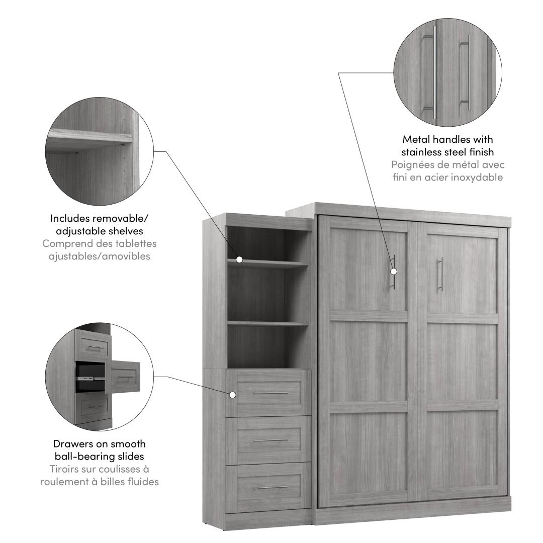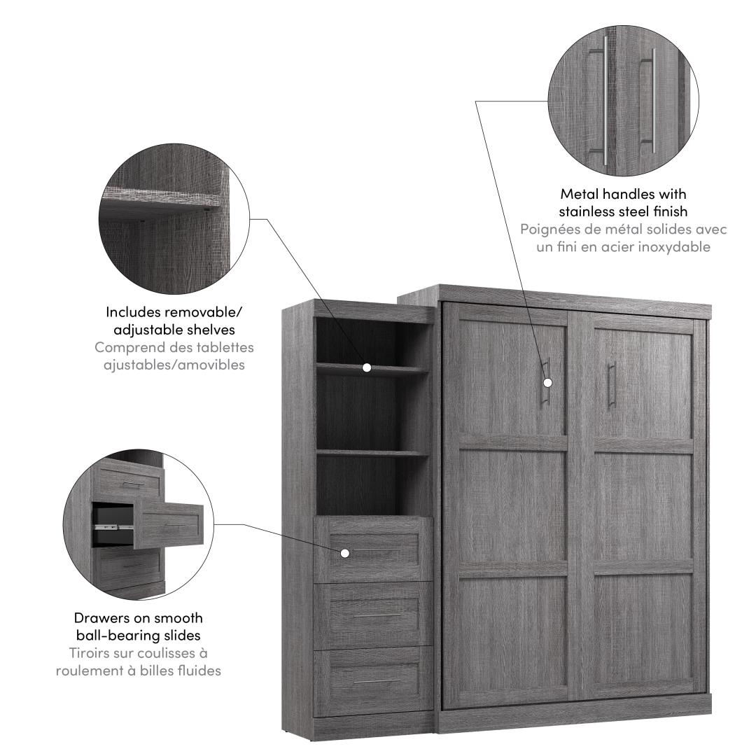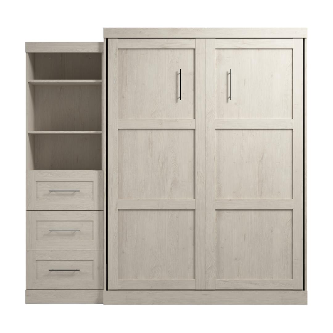 Queen Murphy Bed and Shelving Unit with Drawers (90W)