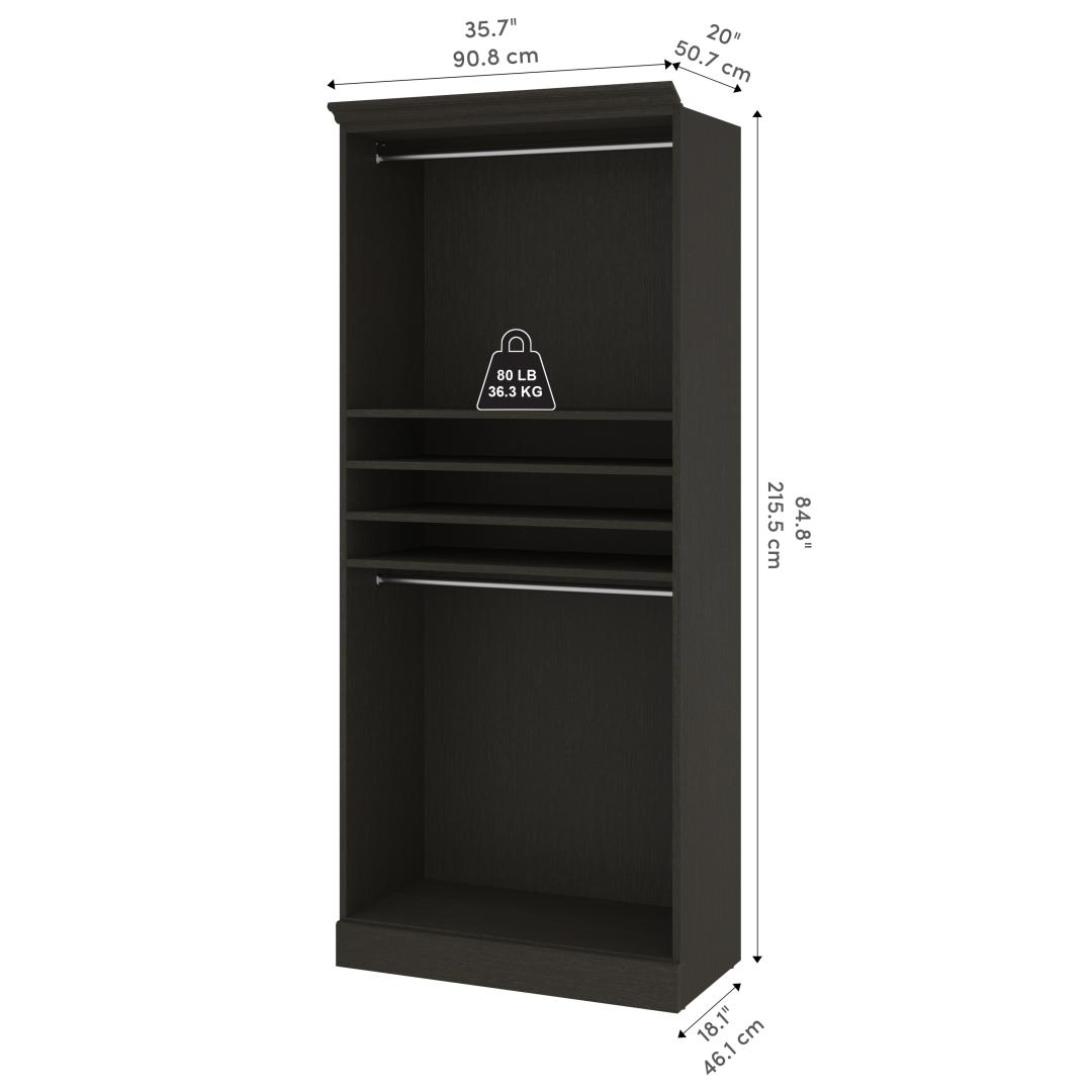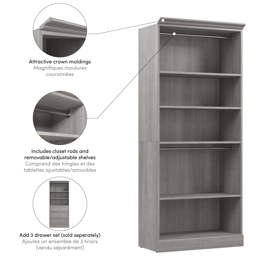 Traditional Closet System with Shelves, Drawers & Clothing Rods, 36W x 20D