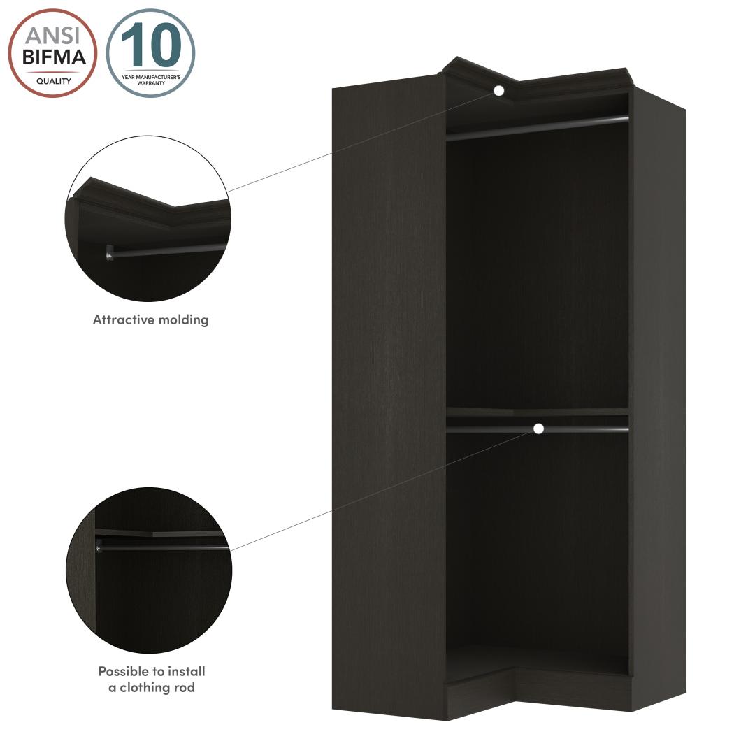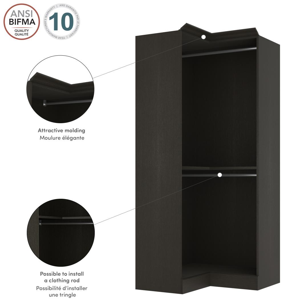 Traditional Corner Closet System with Clothing Rods, 36W x 36D