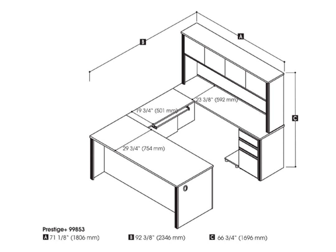 72W U-Shaped Executive Desk with 2 Pedestals and Hutch