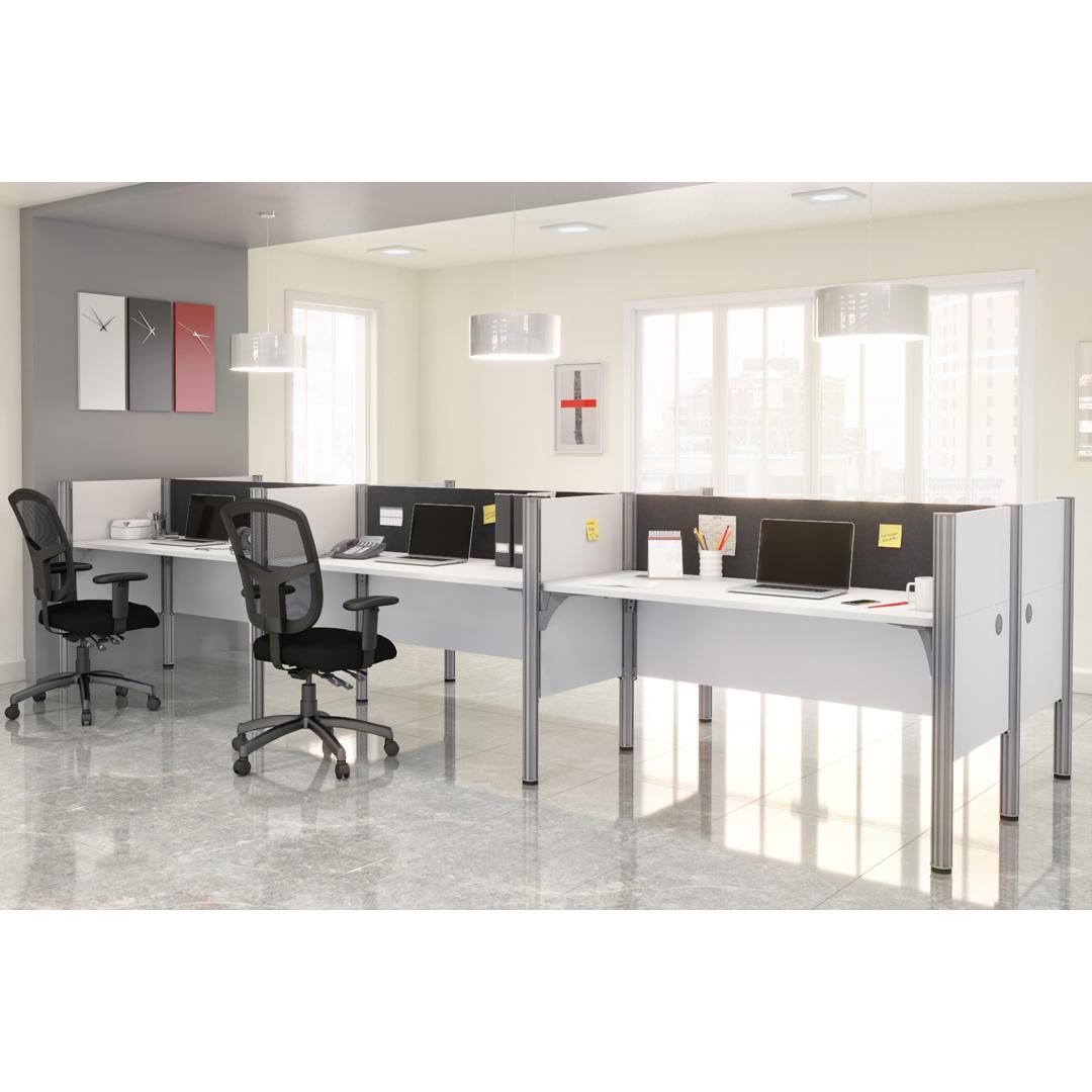 6-Person Office Cubicles with Gray Tack Boards and Low Privacy Panels