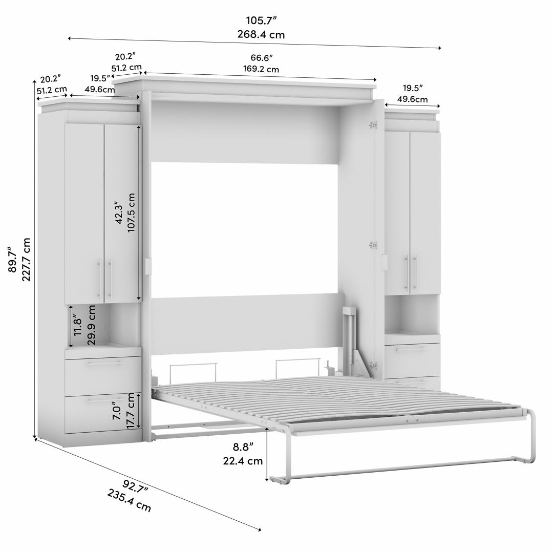 Queen Murphy Bed with Storage Cabinets and Pull-Out Shelves (106W)