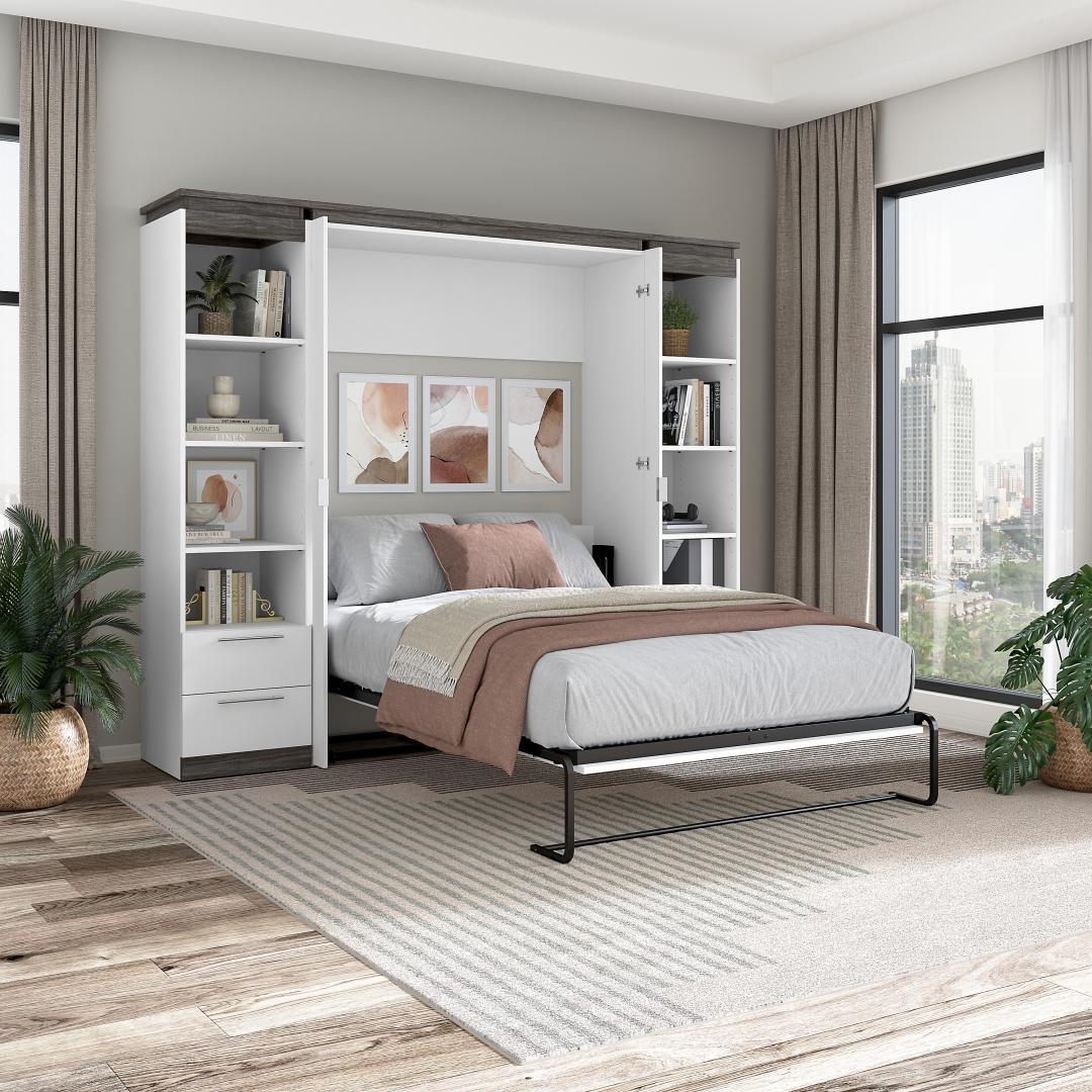 Full Murphy Bed with Shelves and Drawers (100W)