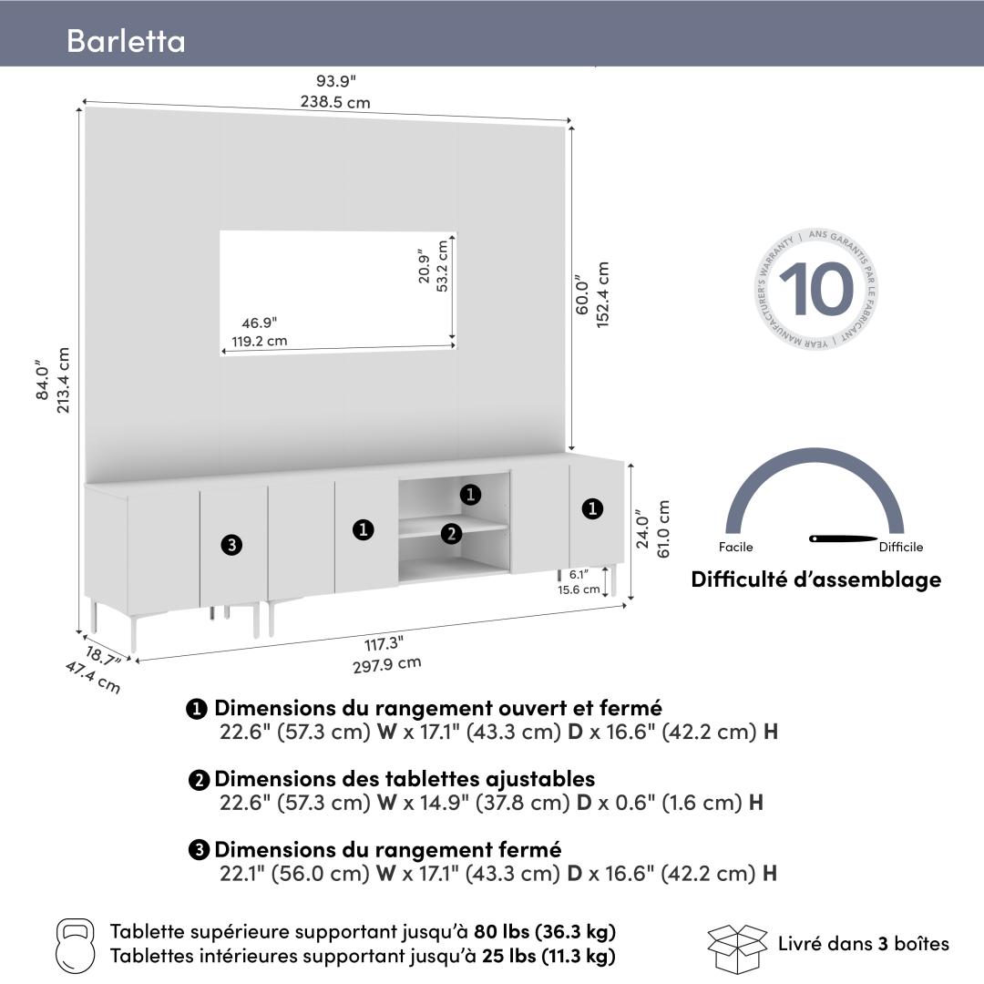 118W Modular Entertainment Center with TV Stand, Storage Cabinets, Hutch, and Large Wall Panel