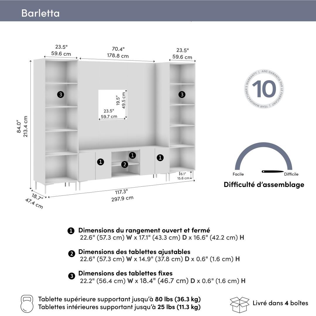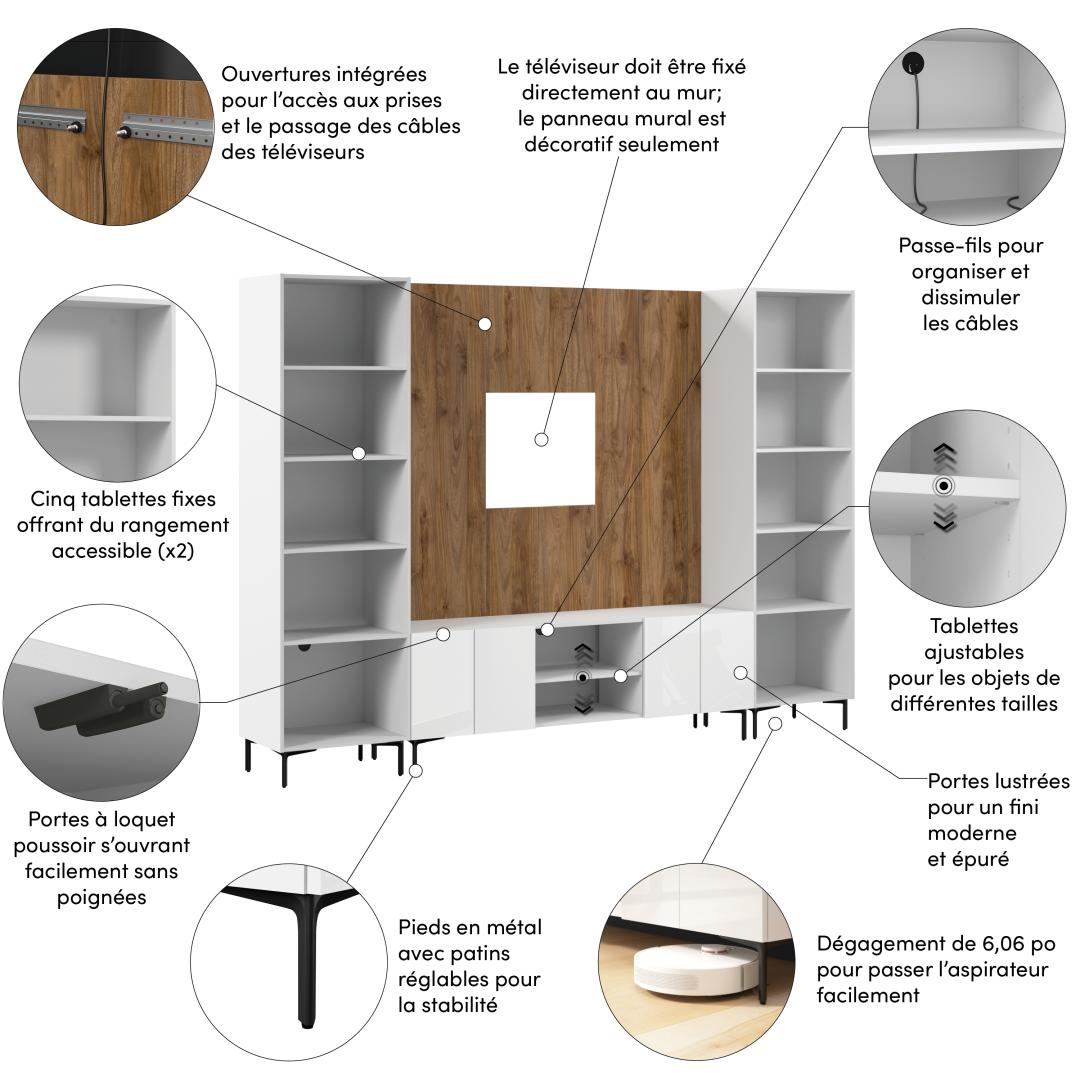 118W Modular Entertainment Center with TV Stand, Media Storage Towers, and Small Wall Panel