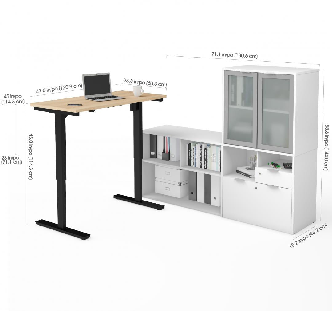 72W L-Shaped Standing Desk and Hutch with Frosted Glass Doors