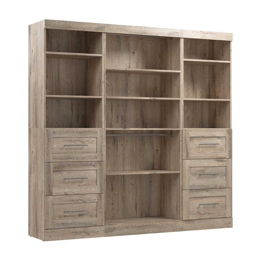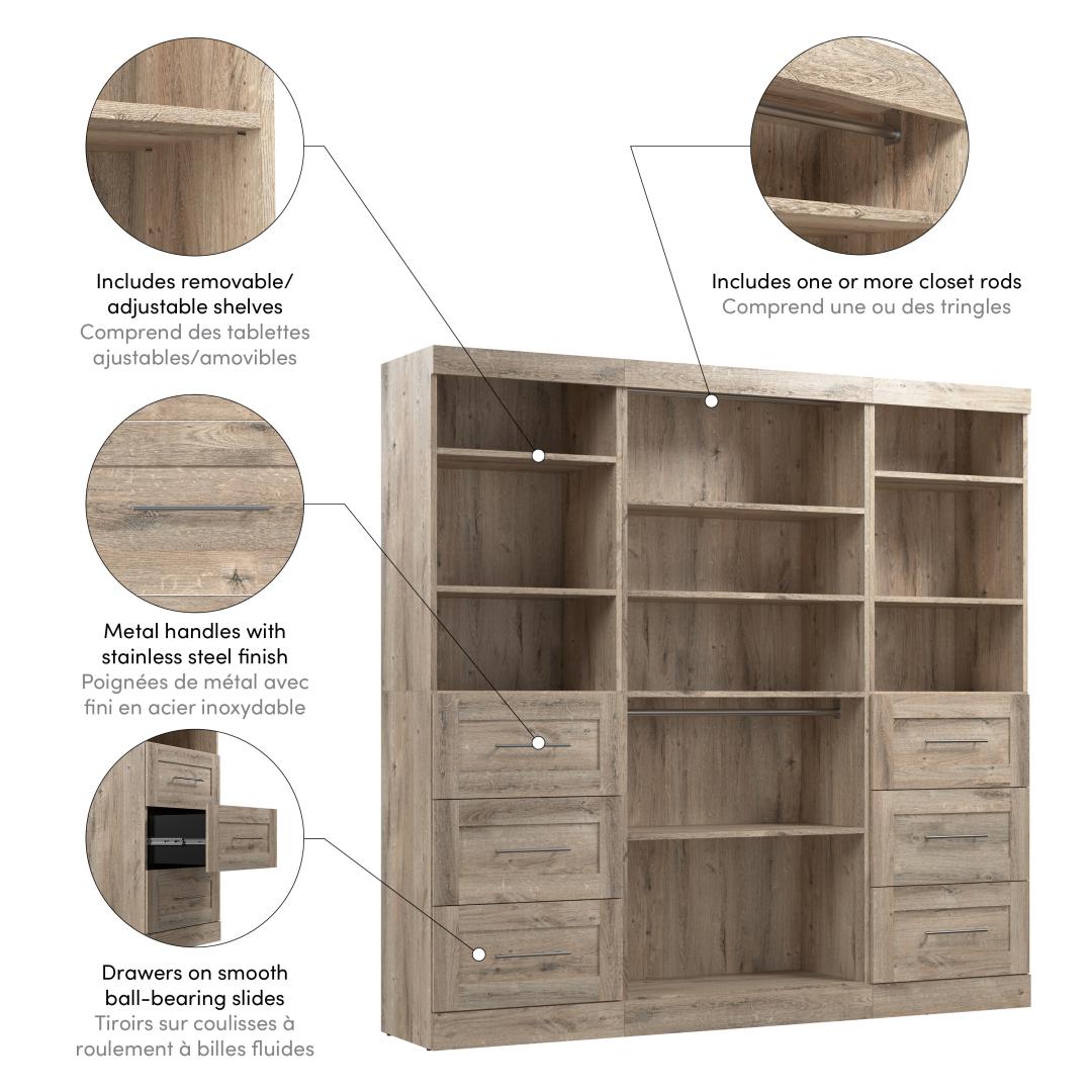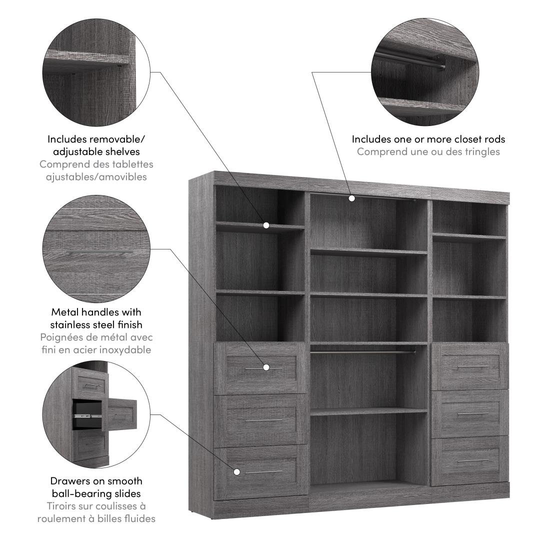 Contemporary Closet System with Shelves, Drawers & Clothing Rods, 86W x 19D
