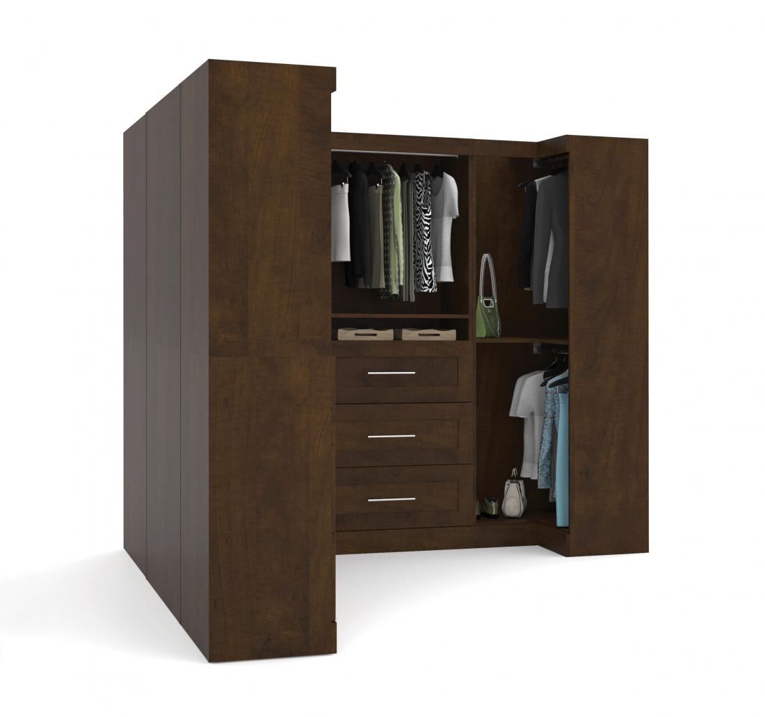 Contemporary U-Shaped Closet System with Shelves, Drawers & Clothing Rods, 161W x 33D