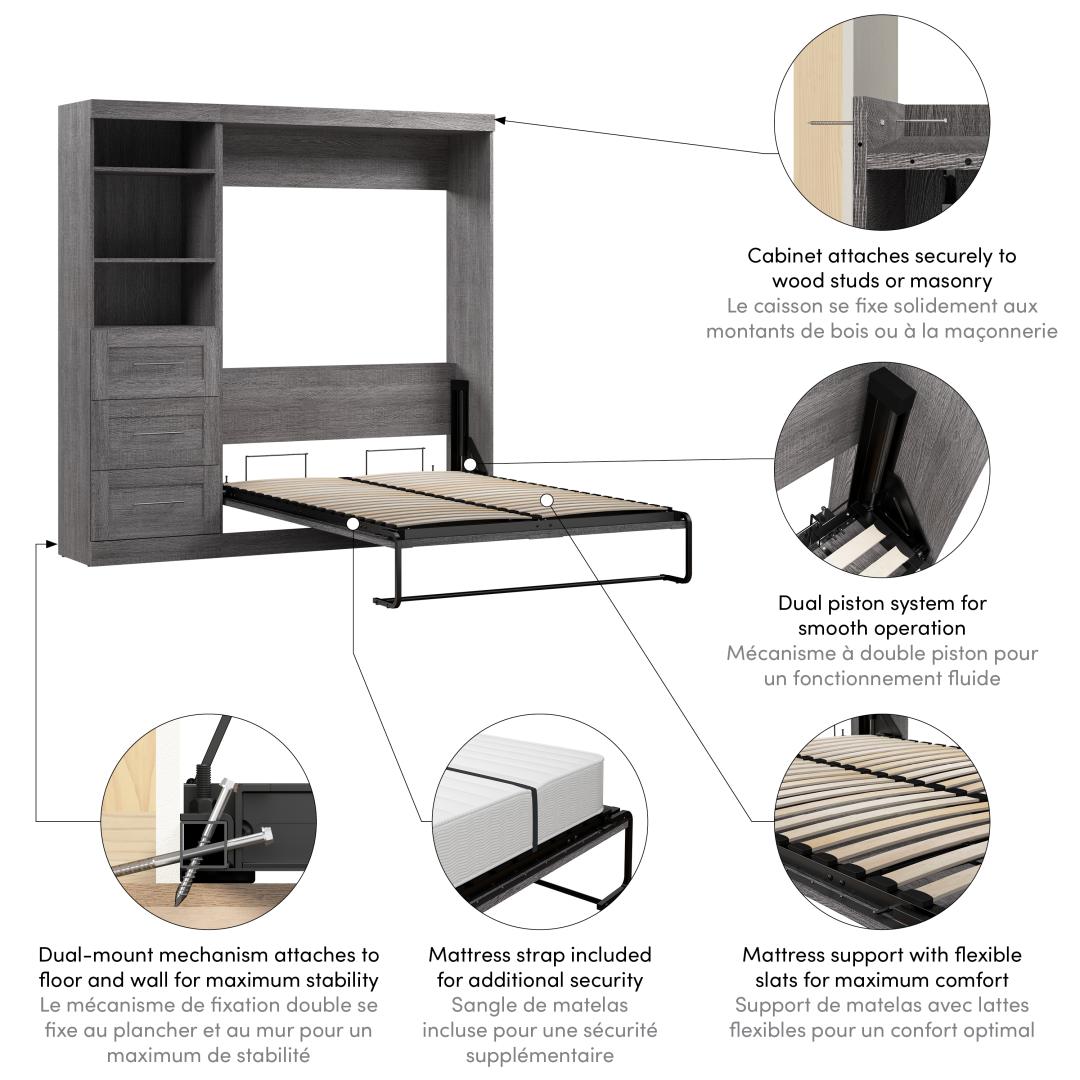 Full Murphy Bed and Shelving Unit with Drawers (84W)