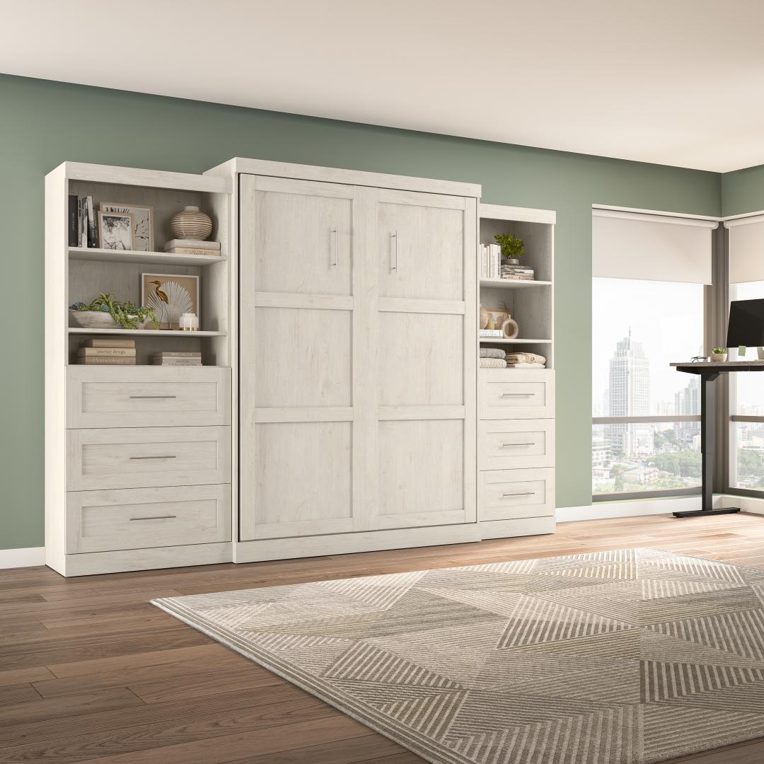 Queen Murphy Bed and 2 Shelving Units with Drawers (126W)