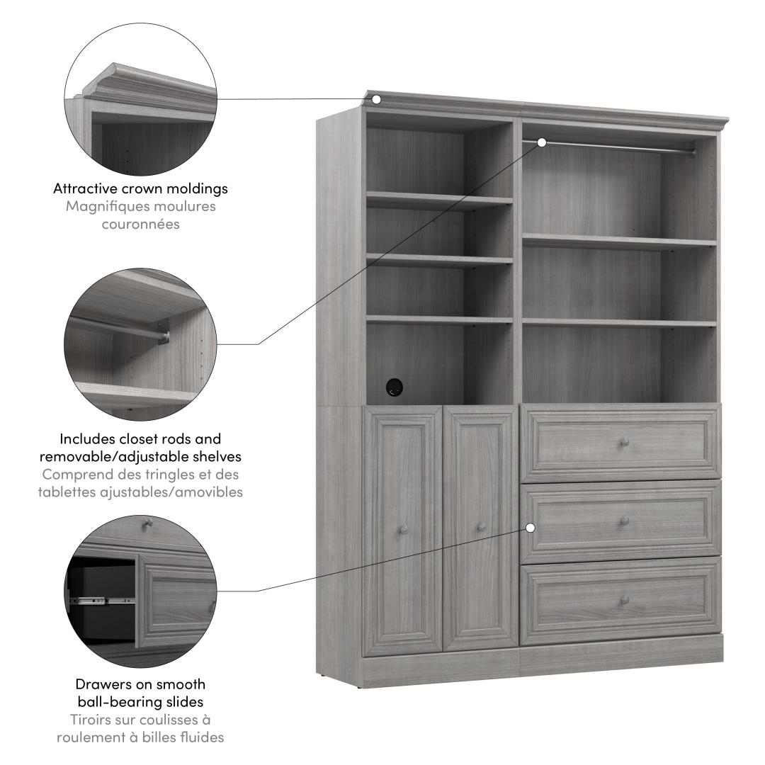 Traditional Closet System with Shelves, Drawers, Clothing Rods & Doors, 61W x 20D