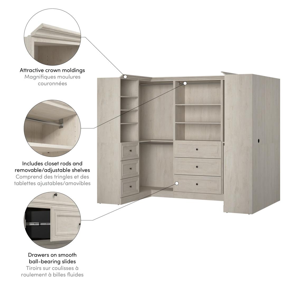 Traditional U-Shaped Closet System with Shelves, Drawers, Clothing Rods, Doors & Cubbies, 108W x 61D