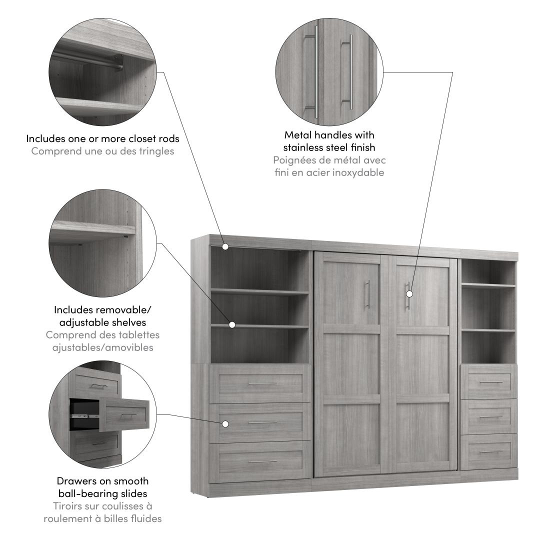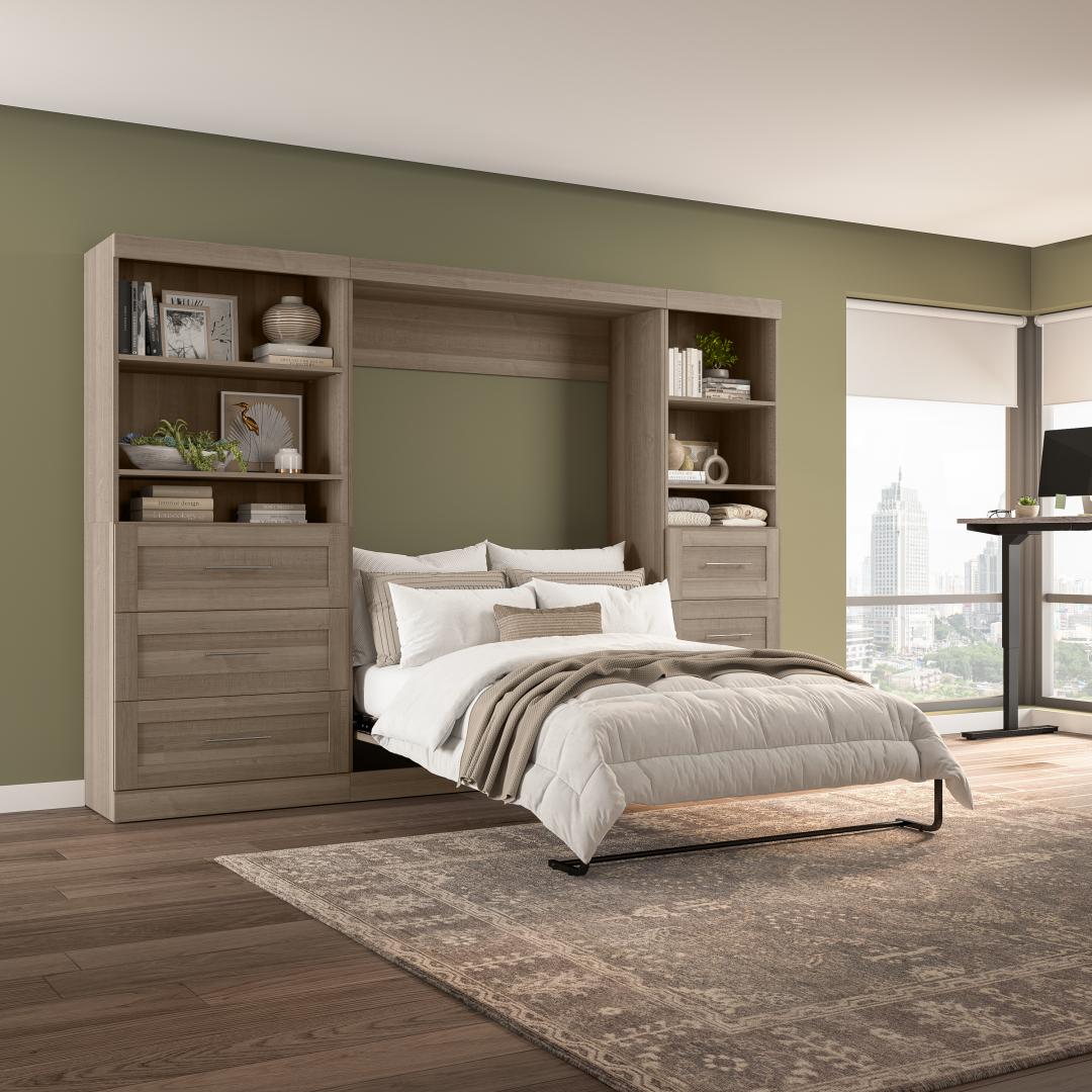 Full Murphy Bed and 2 Shelving Units with Drawers (120W)