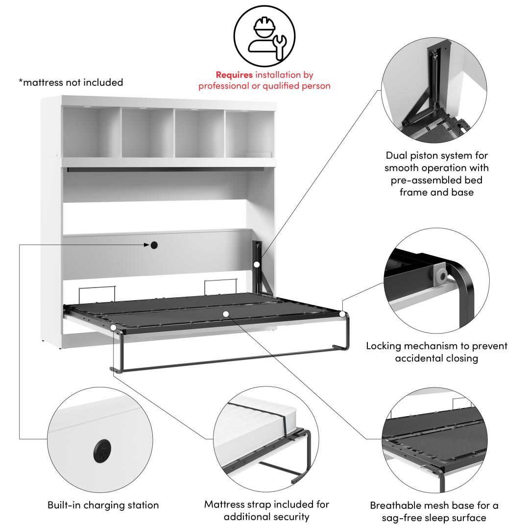 80W Full Horizontal Murphy Bed with Overhead Storage