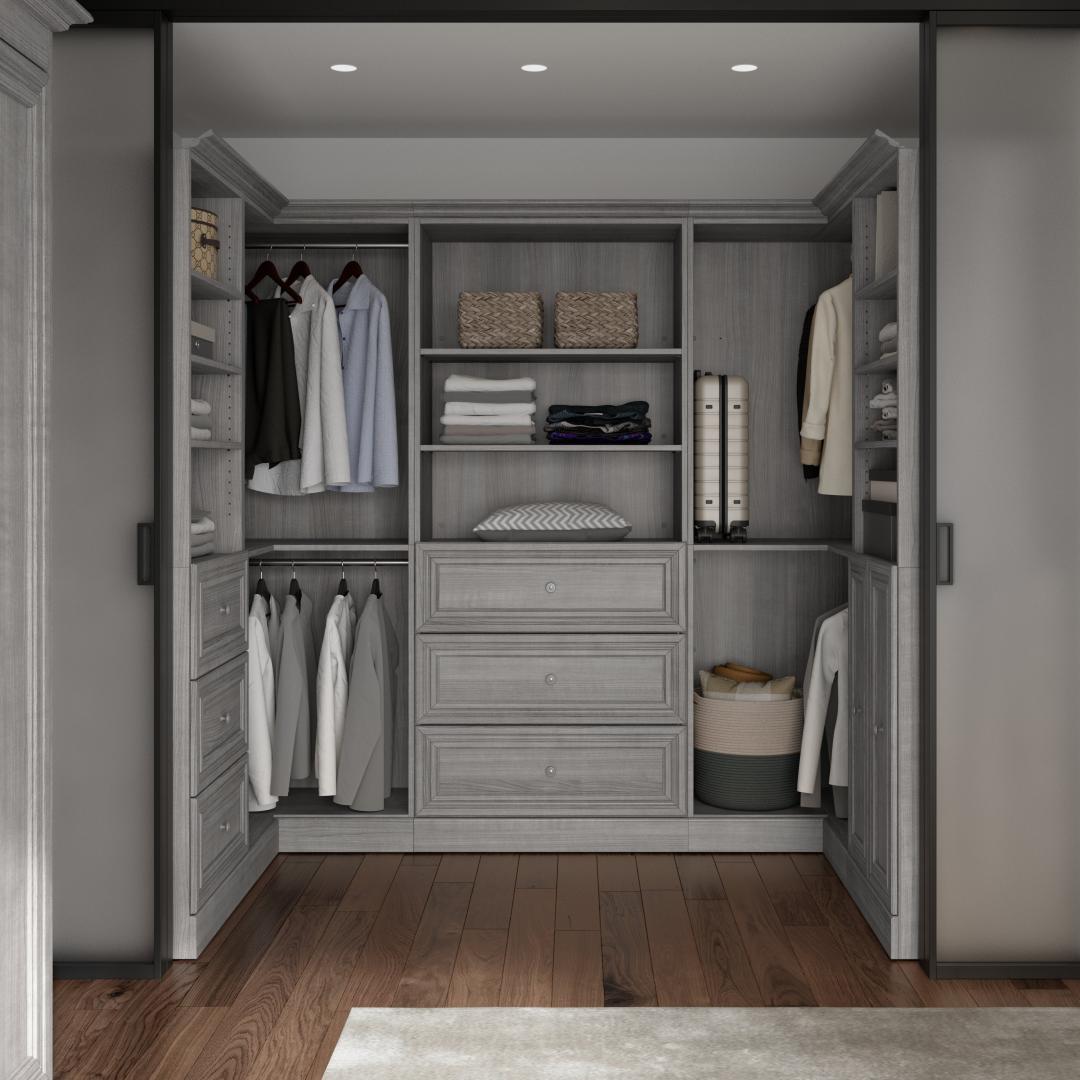 Traditional U-Shaped Closet System with Shelves, Drawers, Clothing Rods, Doors & Cubbies, 108W x 61D