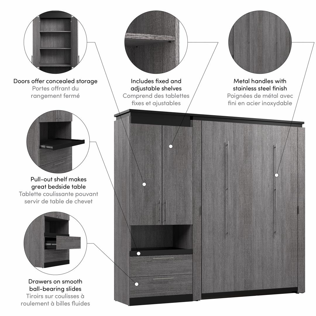 Full Murphy Bed with Storage Cabinet and Pull-Out Shelf (91W)