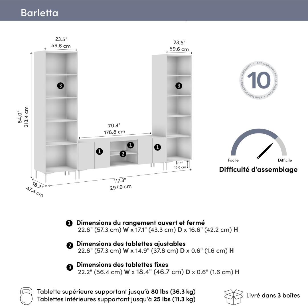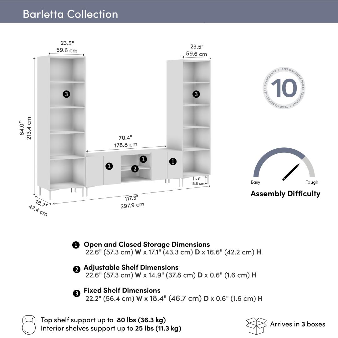 118W Modular Entertainment Center with TV Stand and Media Storage Towers