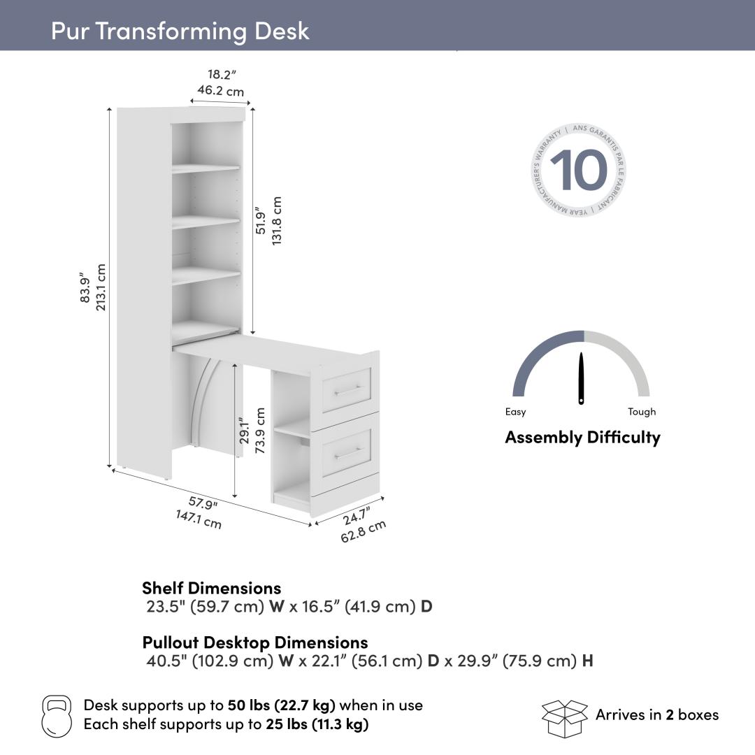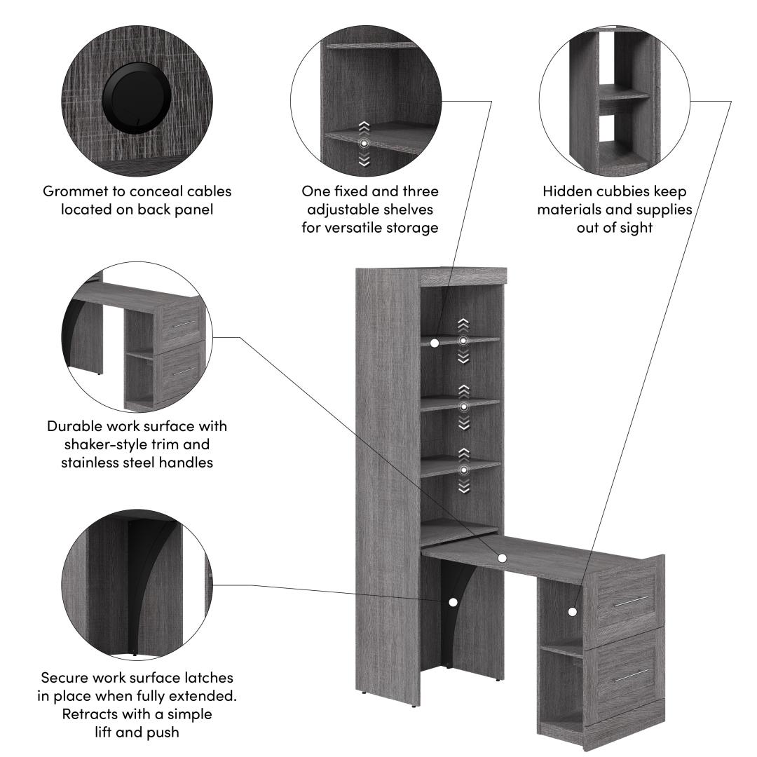 25W Pull-Out Desk Cabinet with Shelves and Hidden Storage