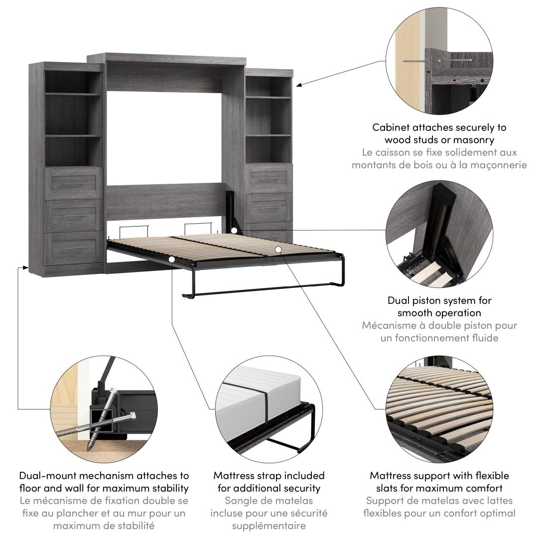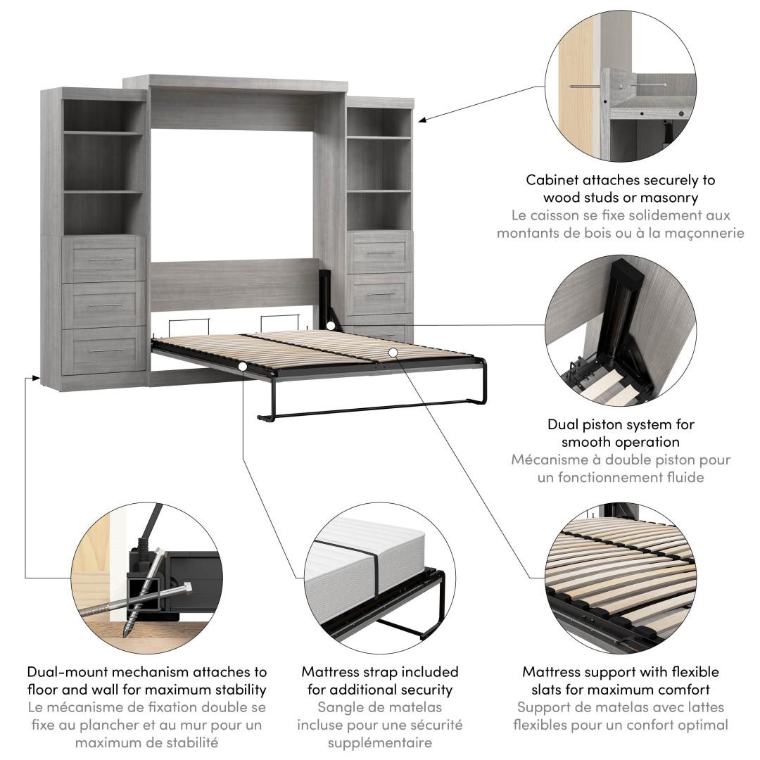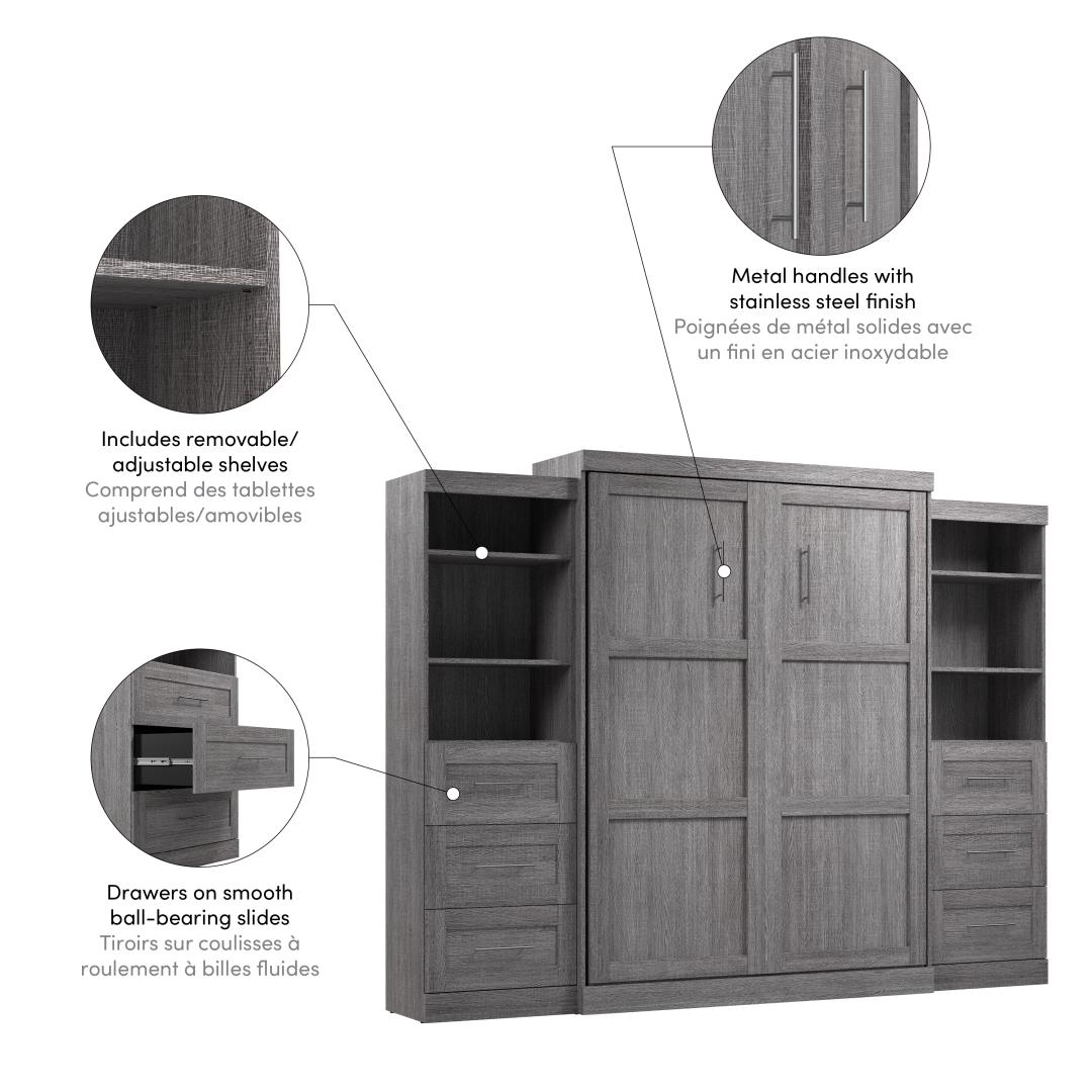 Grand lit escamotable et 2 étagères avec tiroirs (115L)