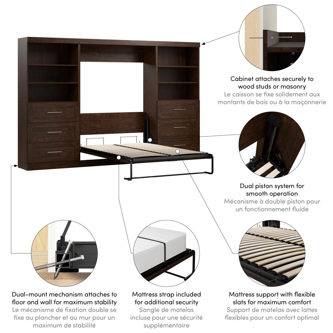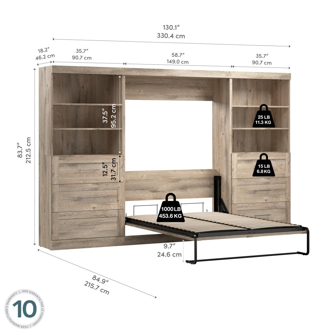 Lit escamotable double et 2 étagères avec tiroirs (131L)