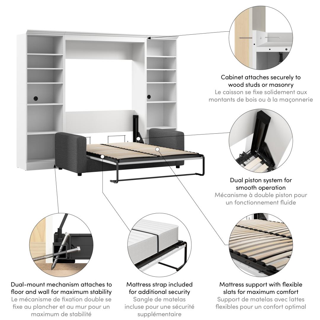 Lit escamotable double avec canapé et organisateurs de garde-robe (109L)