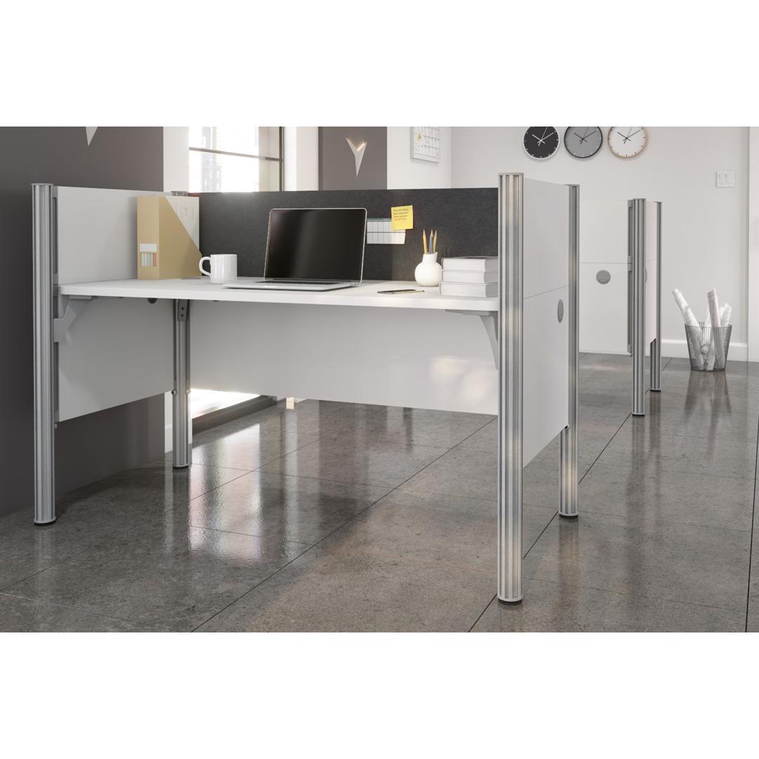 Poste de travail 63L avec babillard gris et panneaux de confidentialité bas