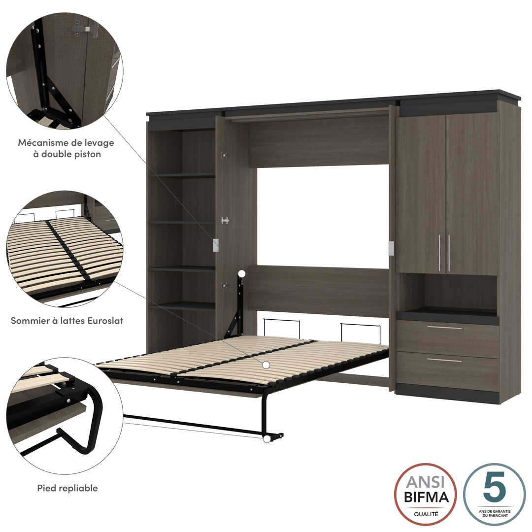 Lit escamotable deux places (double) avec rangement multifonctionnel (119L)