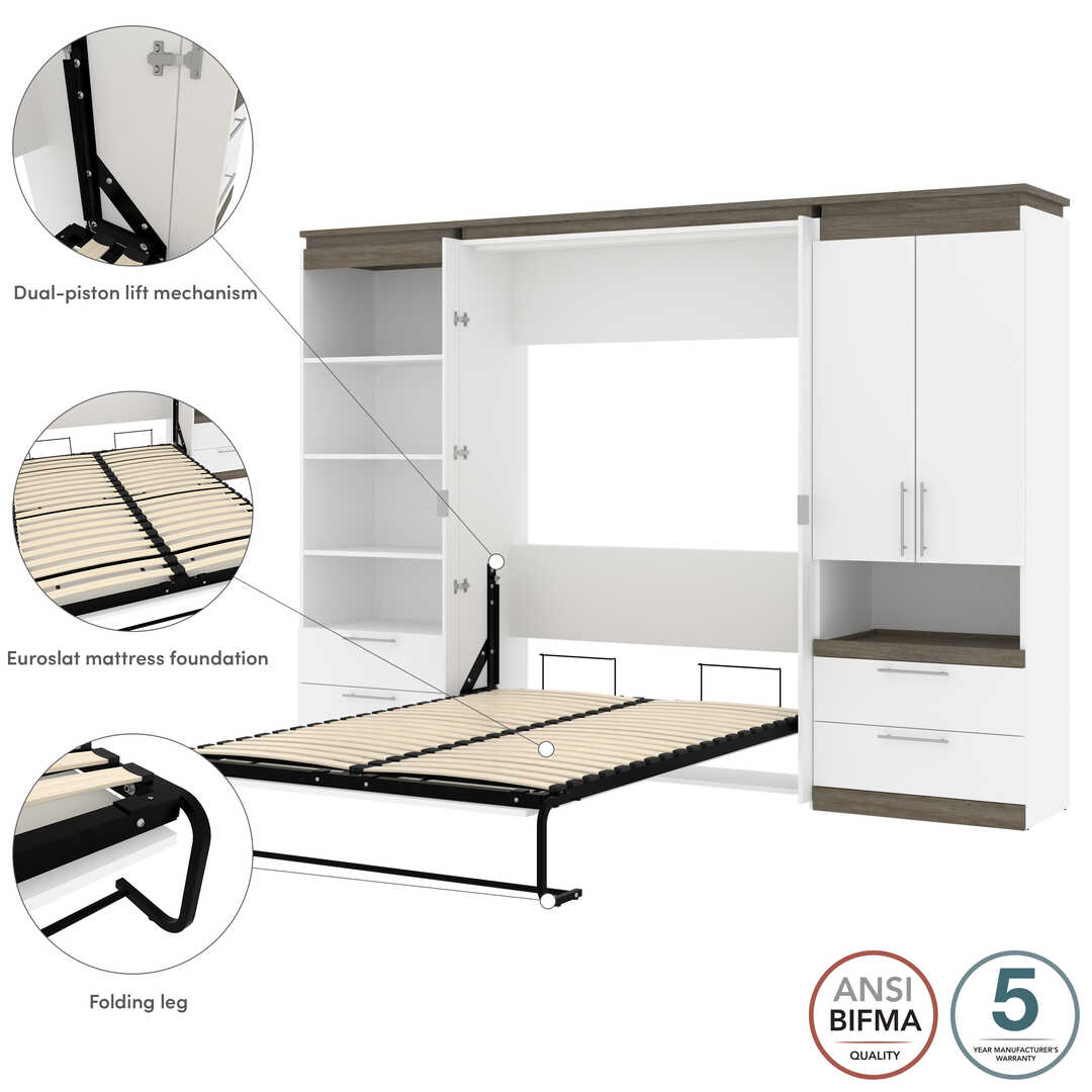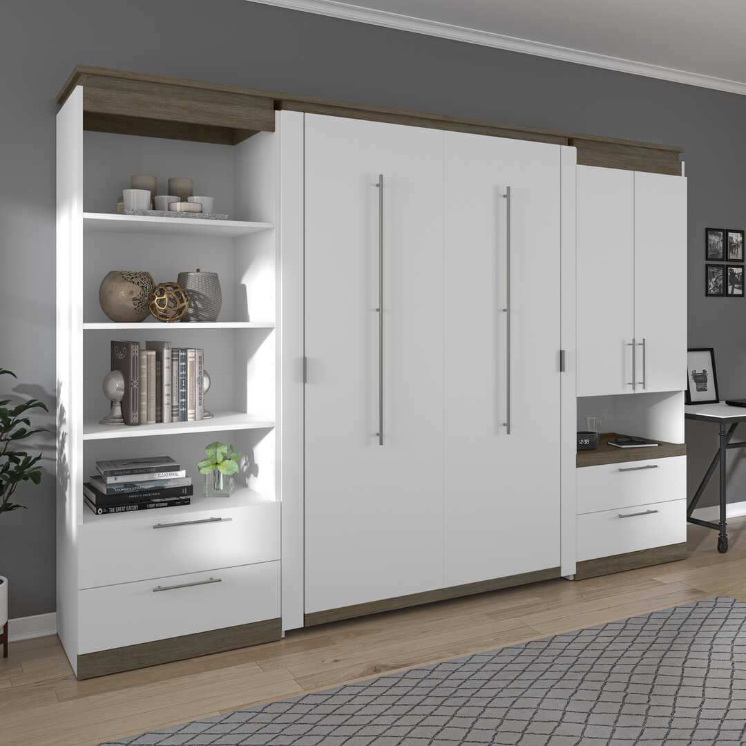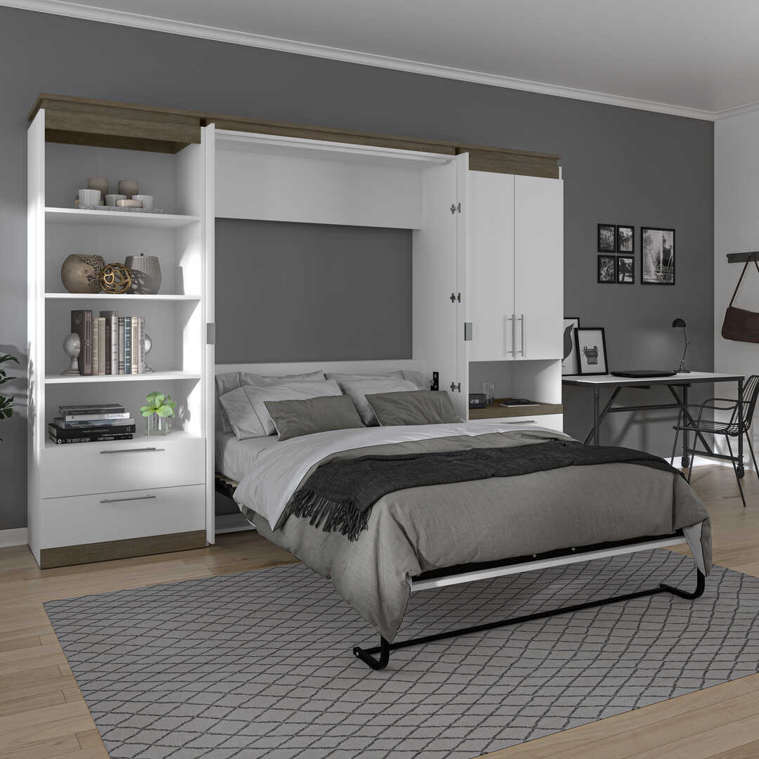 Lit escamotable deux places (double) et rangement multifonctionnel avec tiroirs (119L)