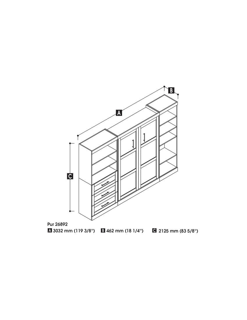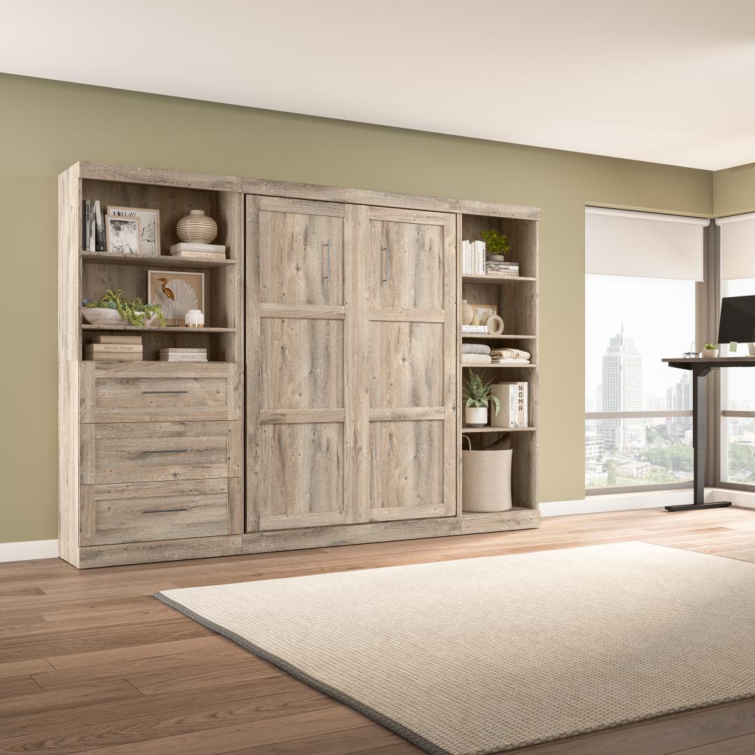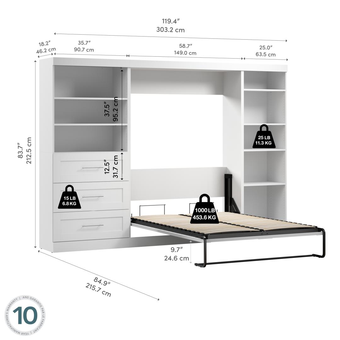 Lit escamotable double avec tablettes et tiroirs (120L)