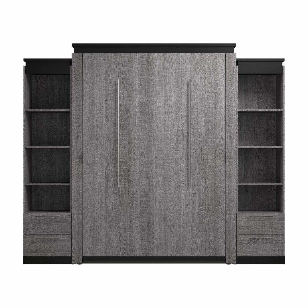 Grand lit escamotable avec tablettes et tiroirs (106L)