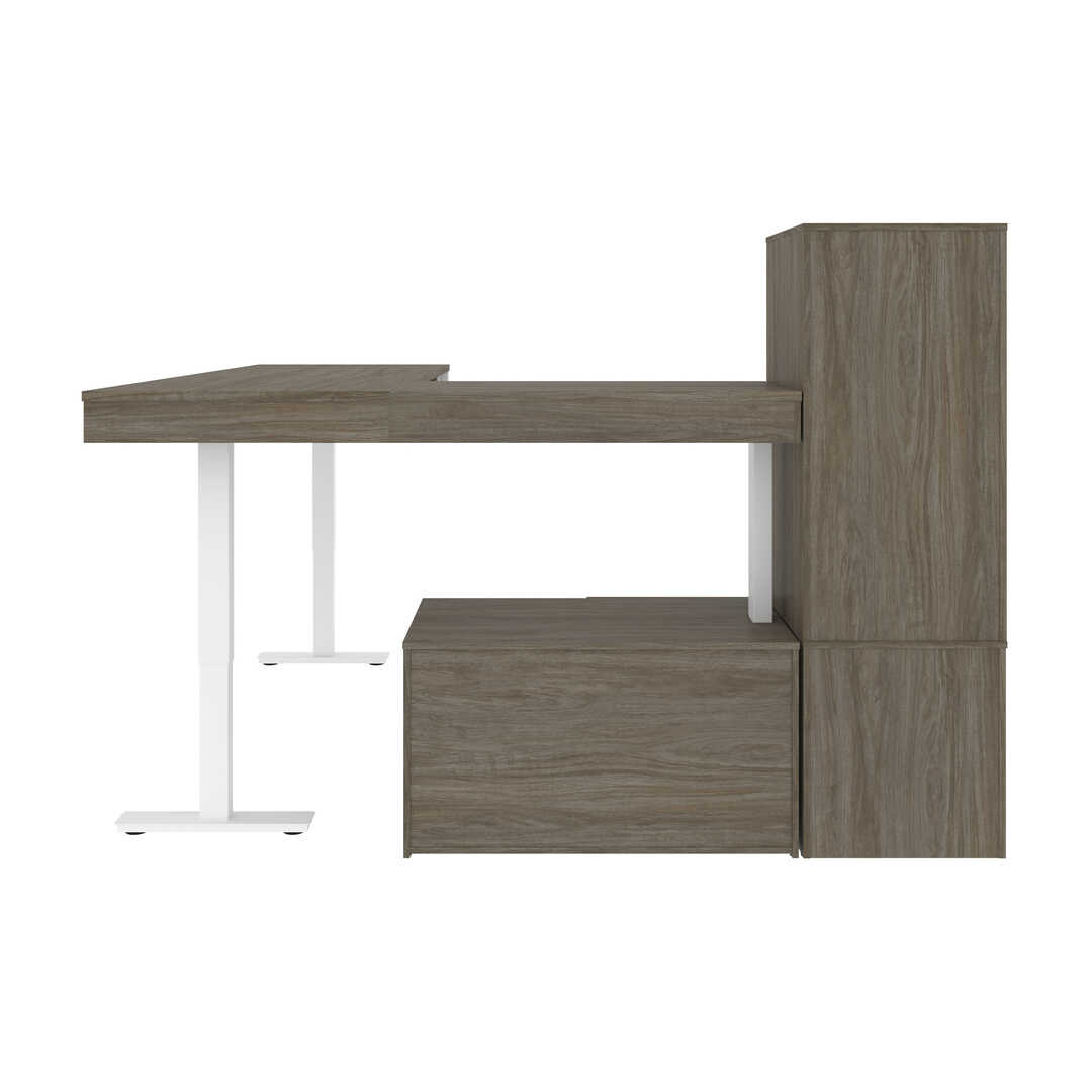 Deux bureaux assis-debout en L 72L avec crédence et étagère