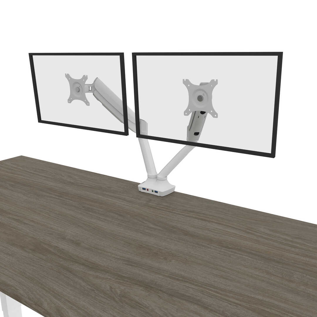 Bureau assis-debout en L 72L avec support double pour moniteurs et rangement