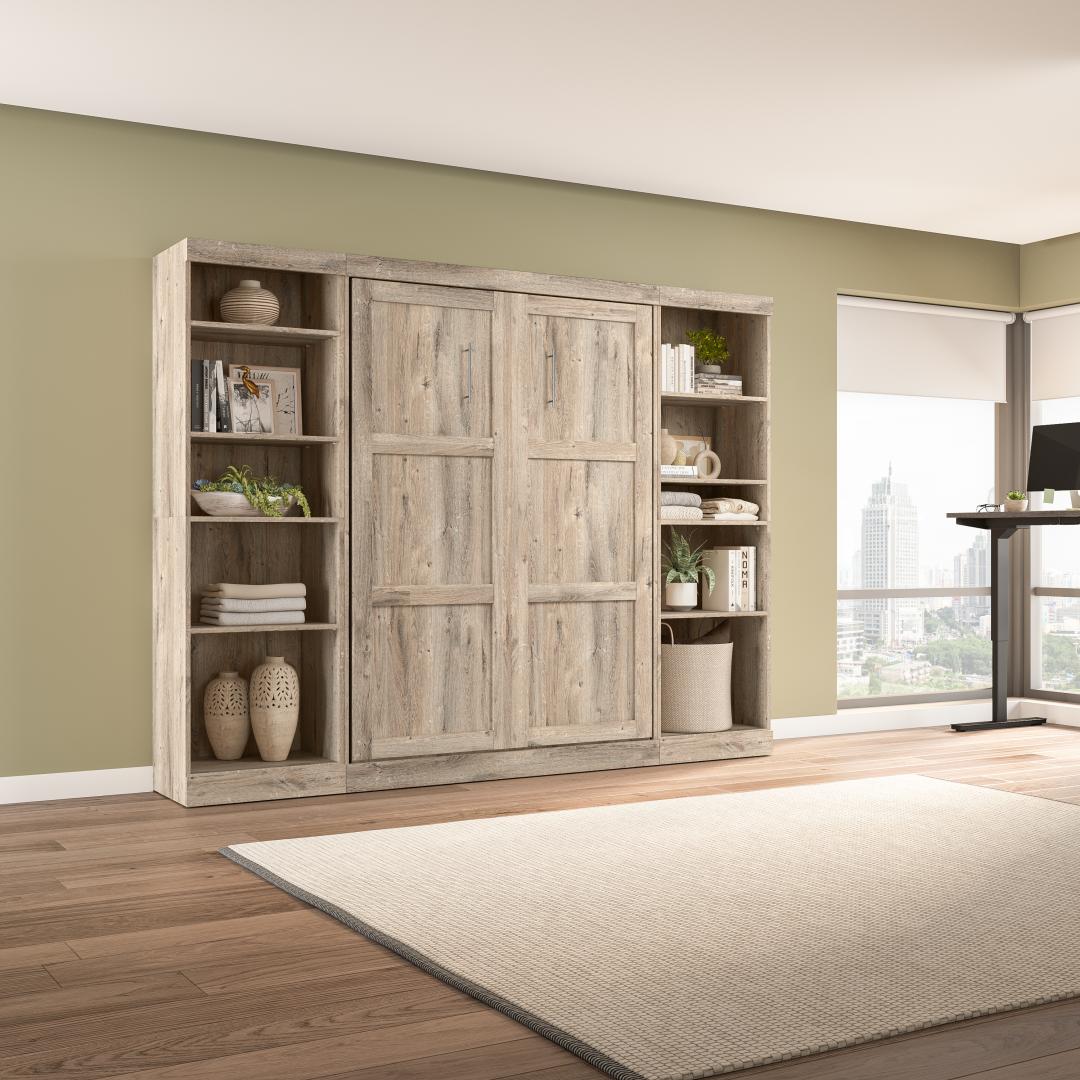 Lit escamotable double avec 2 étagères (109L)