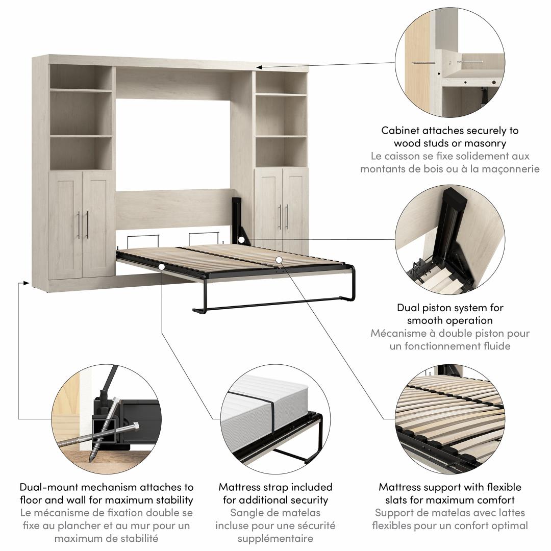 Lit escamotable double avec organisateurs de garde-robe (109L)