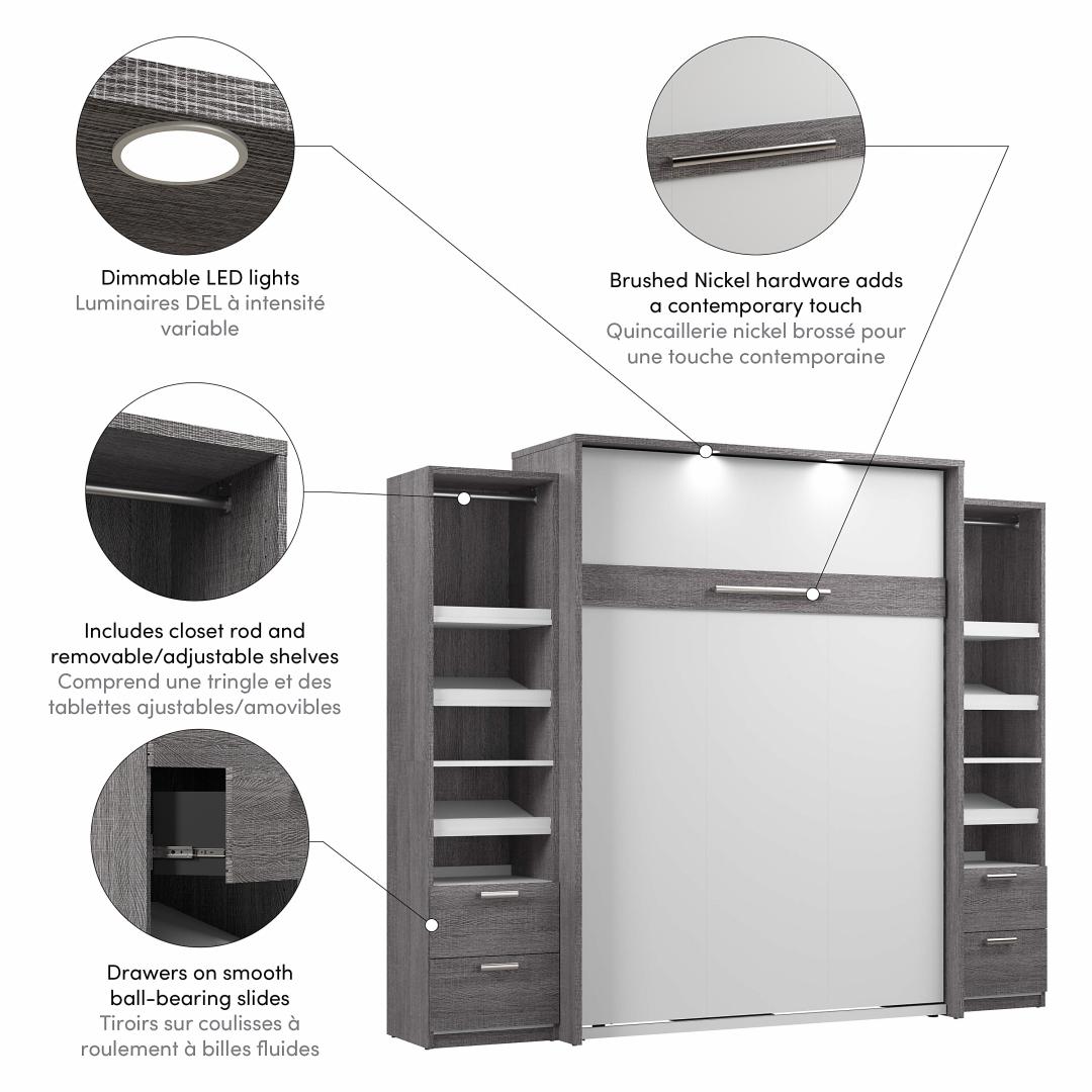 Grand lit escamotable et 2 organisateurs de garde-robe avec tiroirs (105L)