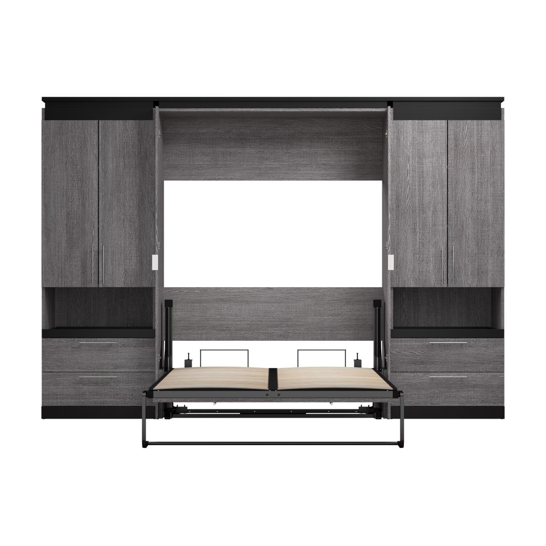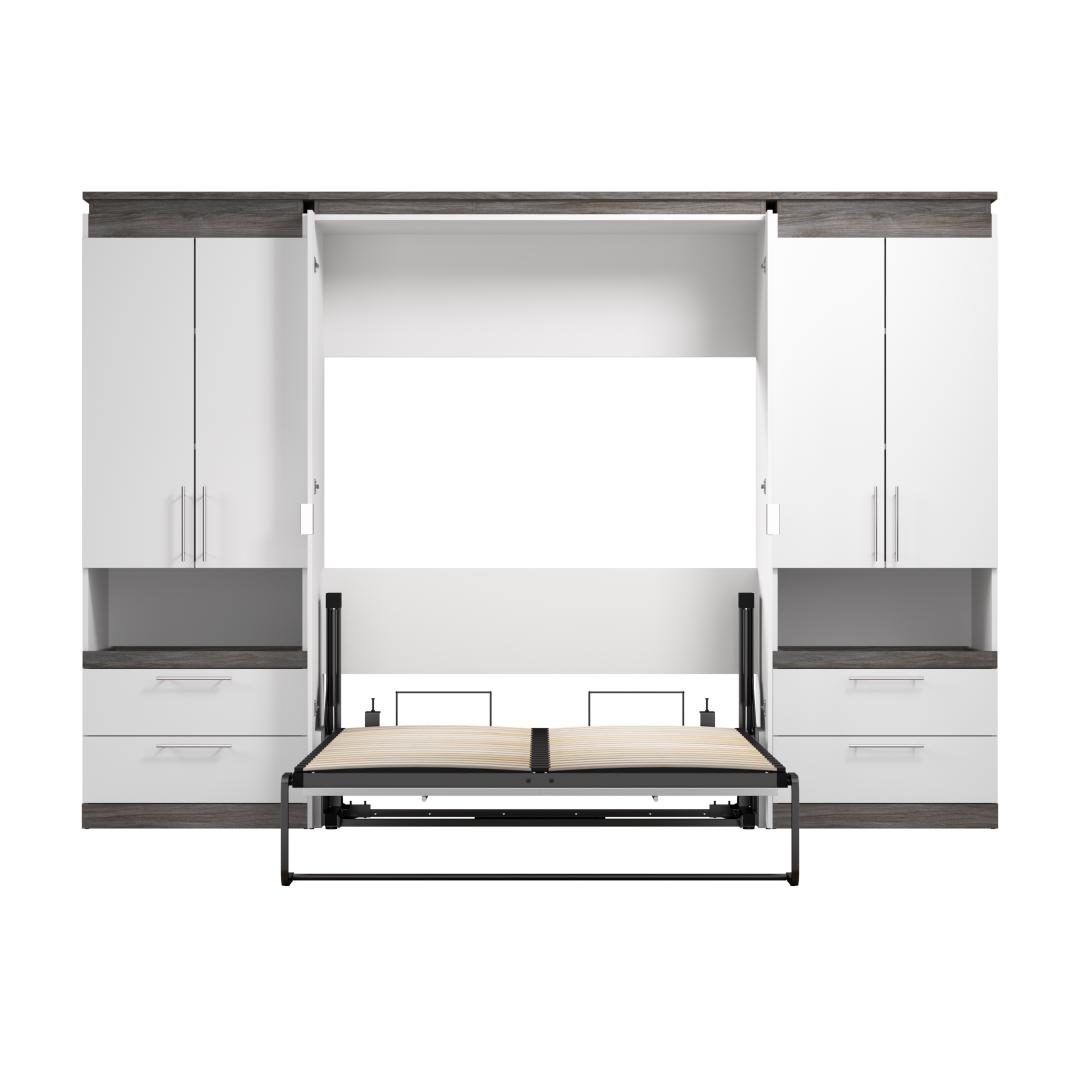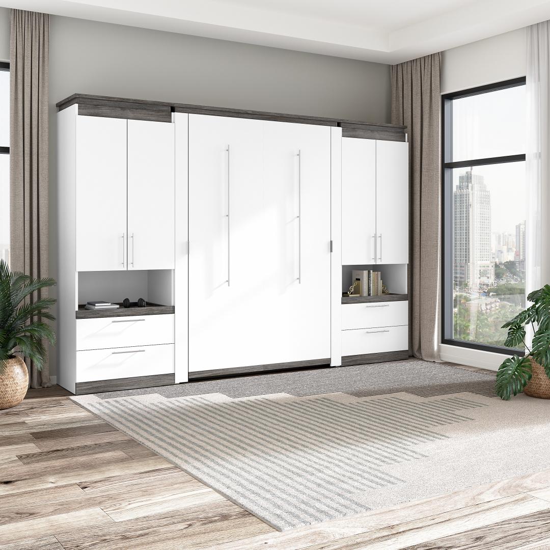 Lit escamotable double avec armoires et tablettes coulissantes (120L)