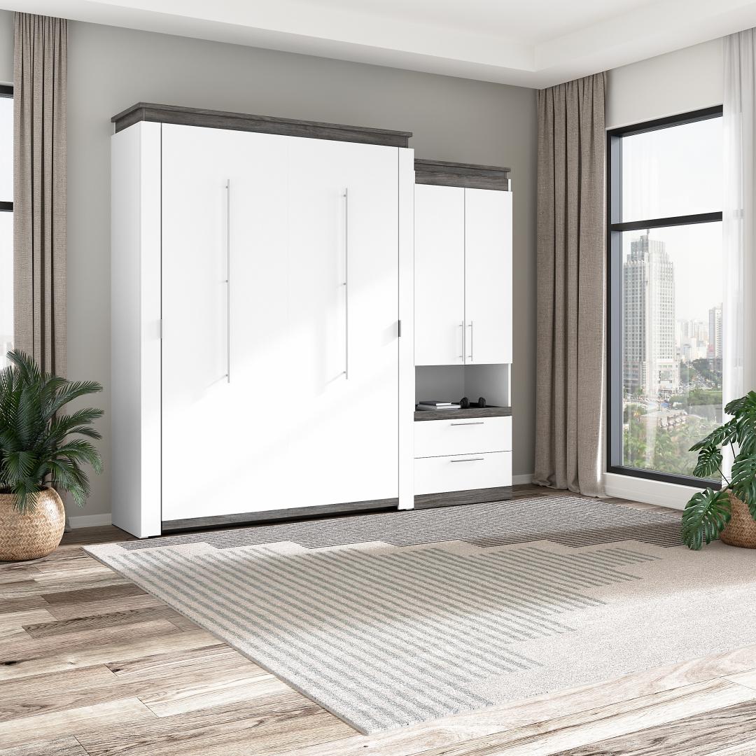 Grand lit escamotable avec armoire et tablette coulissante (97L)
