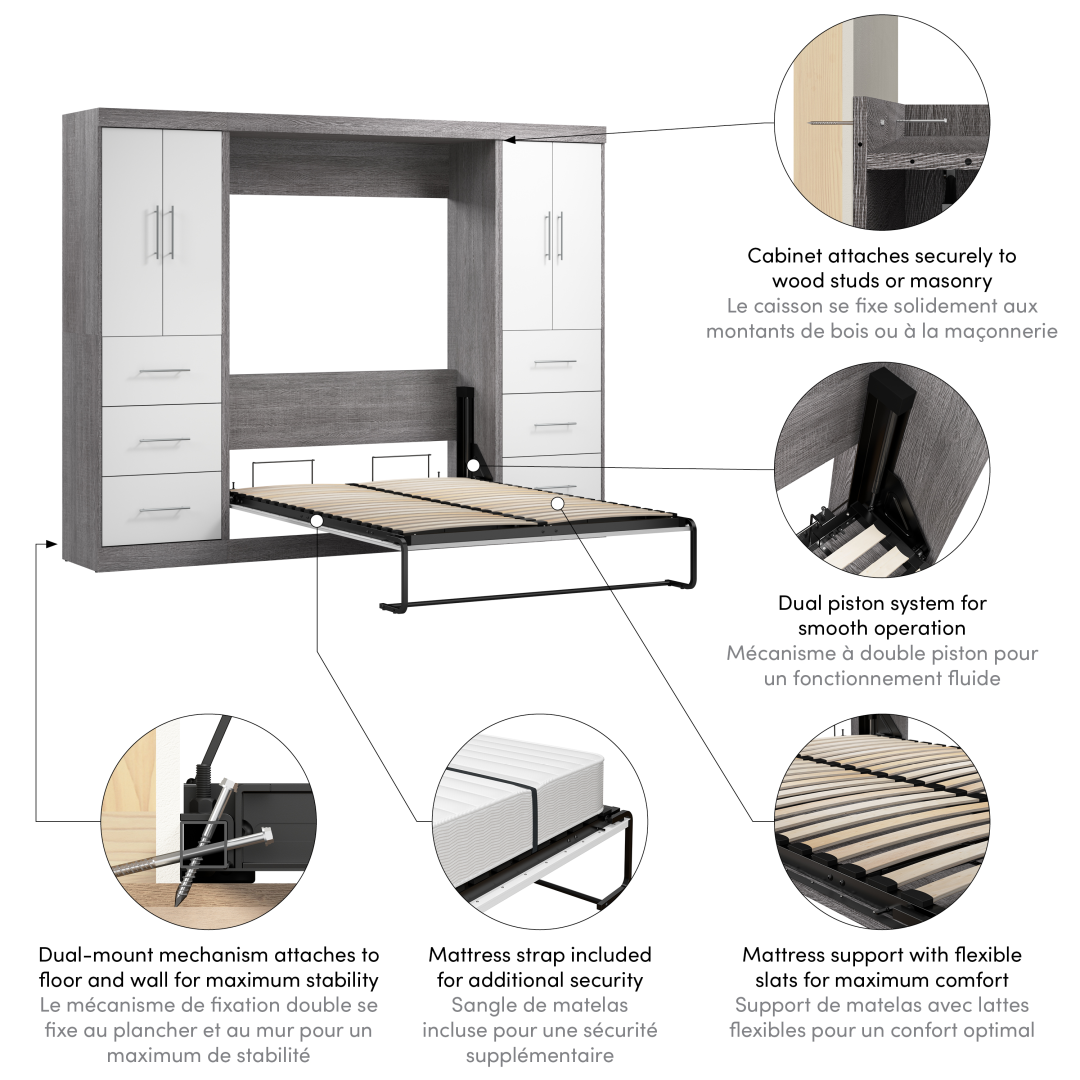 Lit escamotable double avec 2 armoires-penderies (109L)