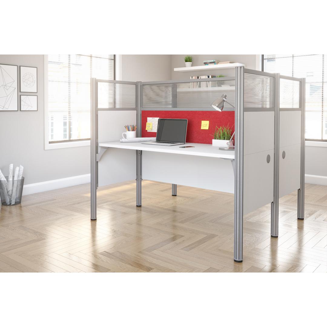 Postes de travail 63L avec babillards rouges et panneaux de confidentialité hauts