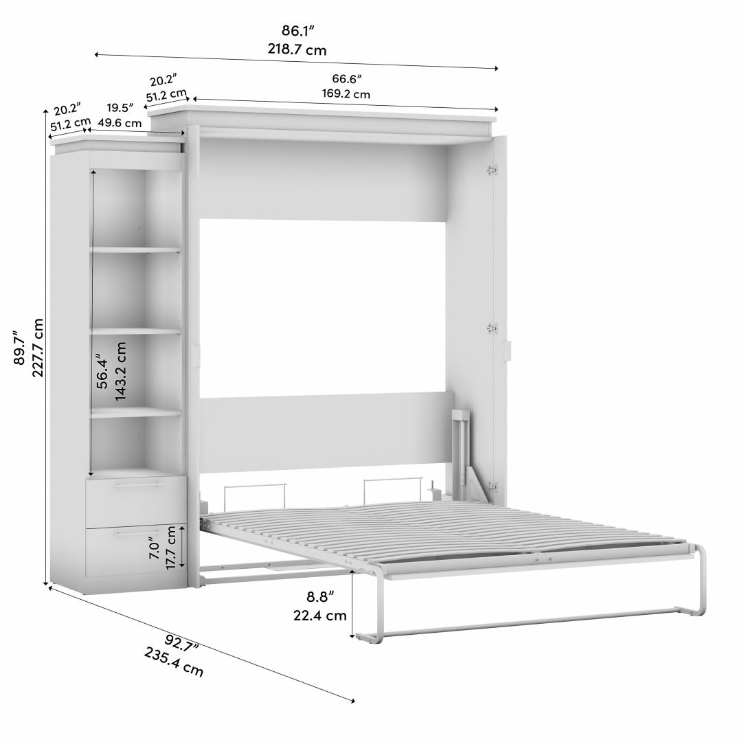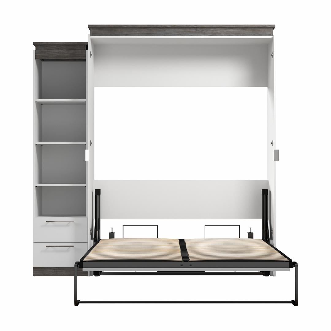 Grand lit escamotable avec tablettes et tiroirs (87L)