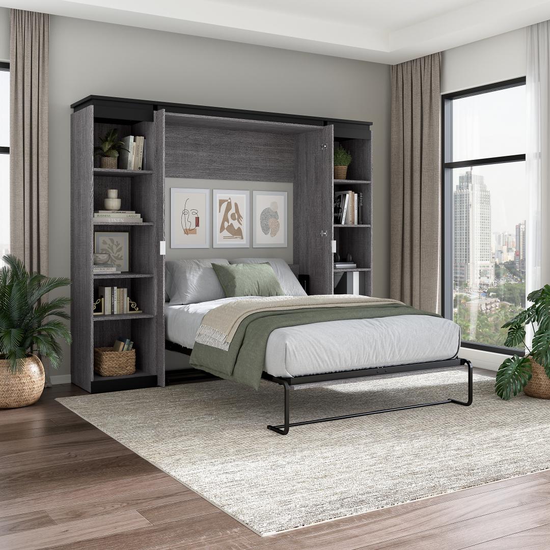 Lit escamotable double avec étagères (100L)