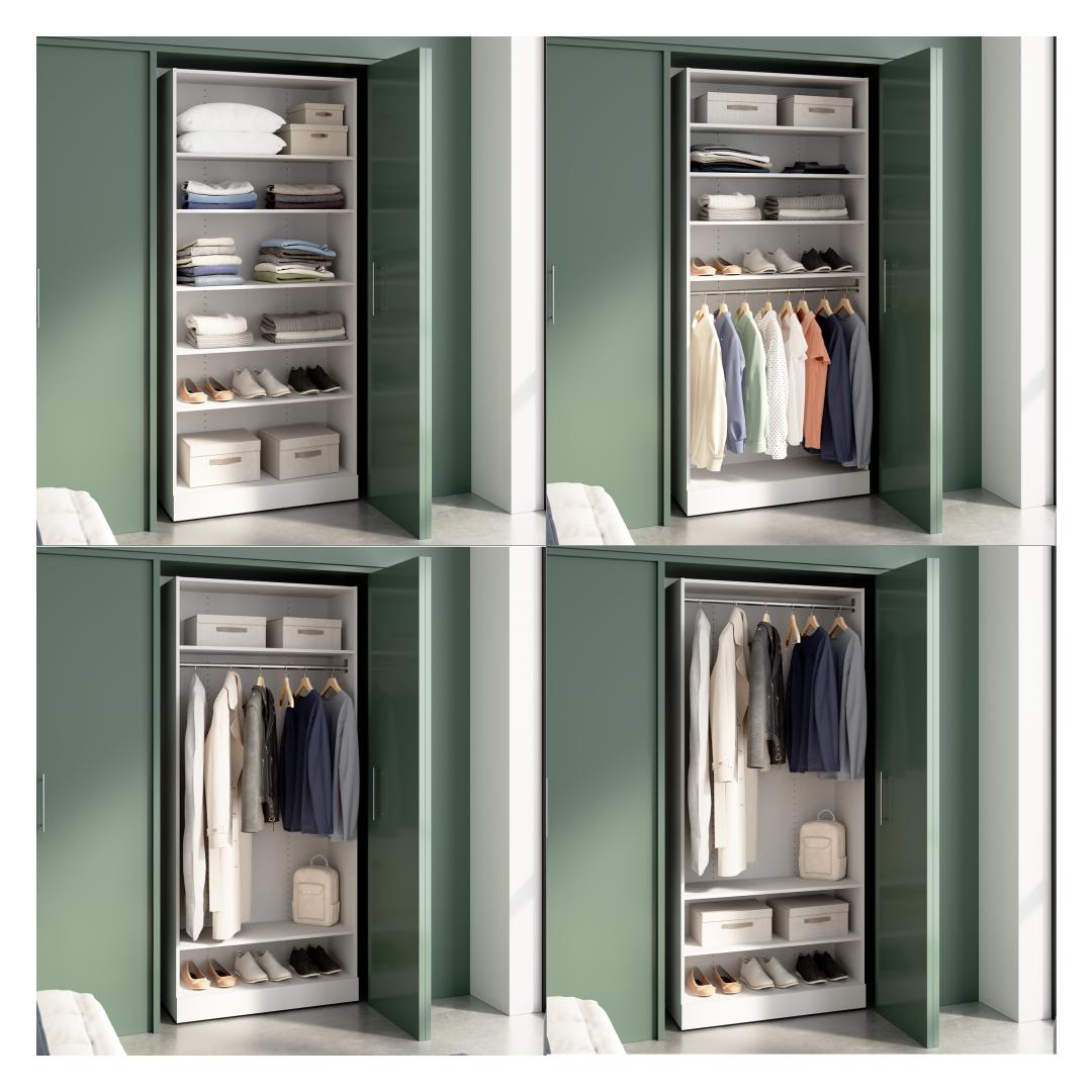 Organisateur de garde-robe modulaire pour walk-in ou placard avec tablettes 36L x 16P