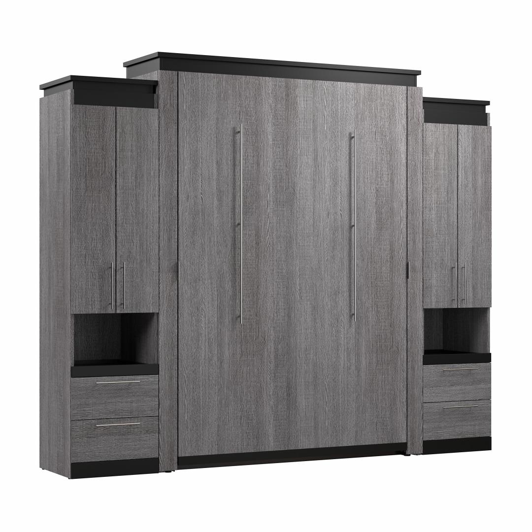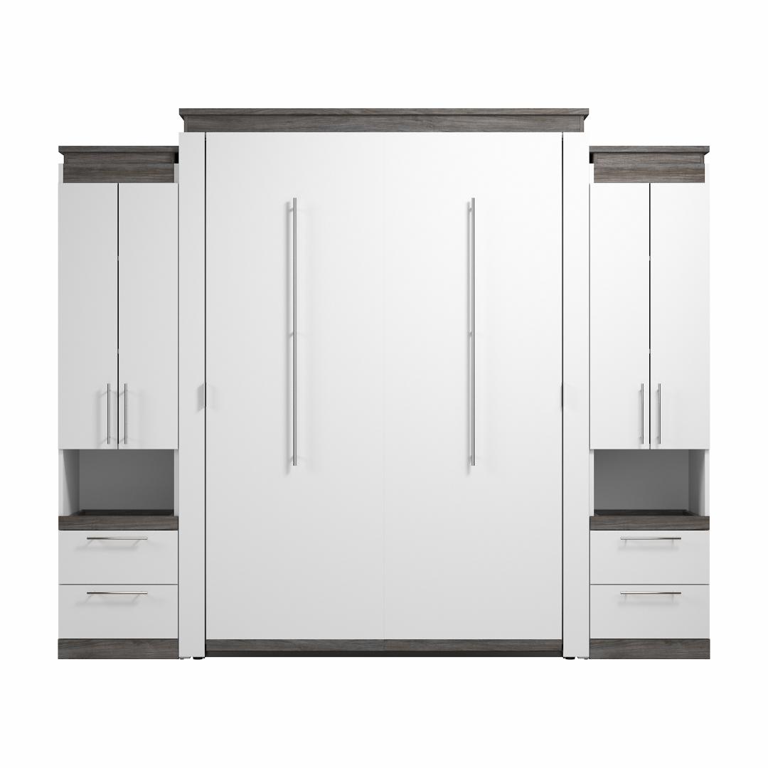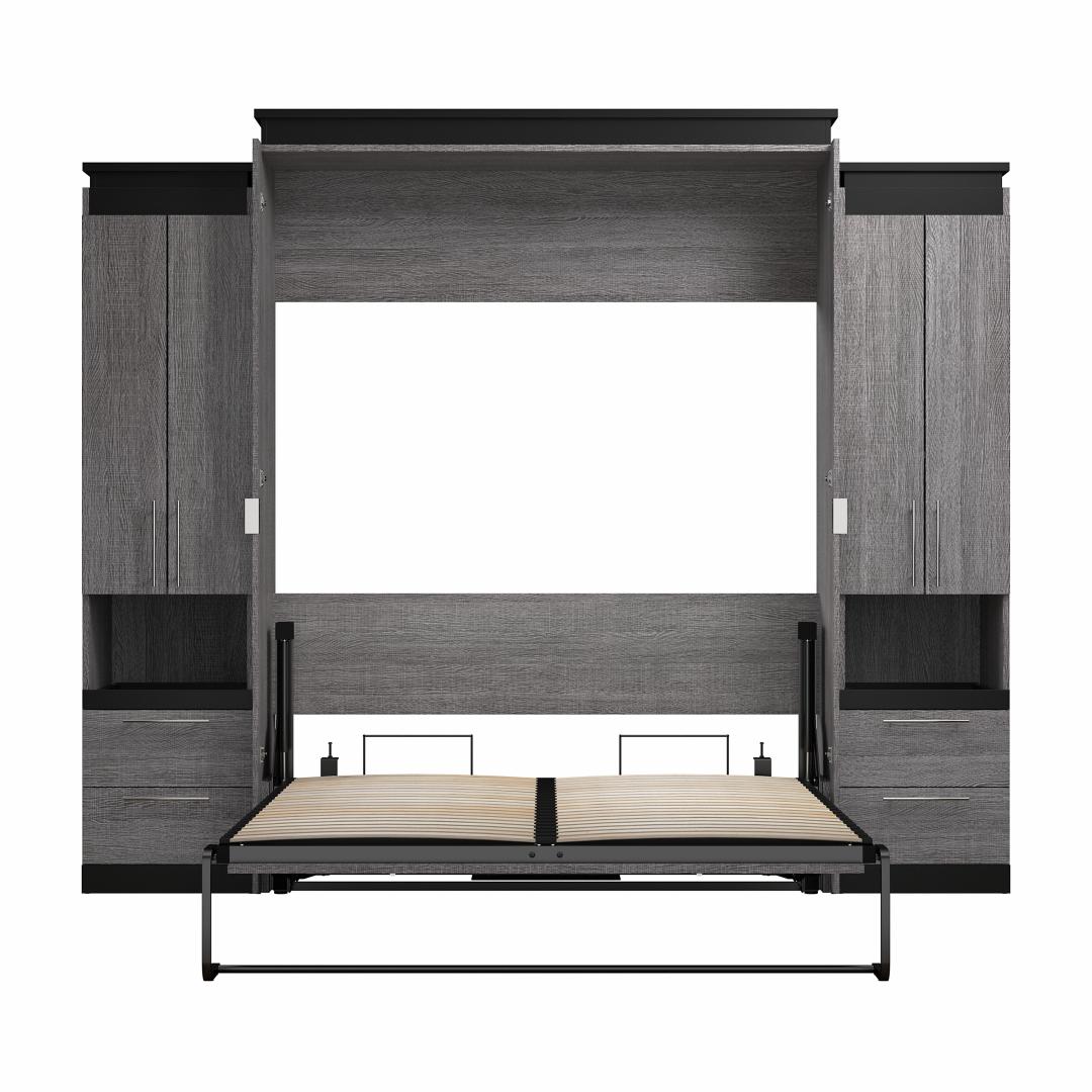 Queen Murphy Bed with Storage Cabinets and Pull-Out Shelves (106W)