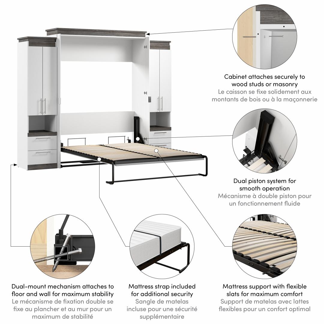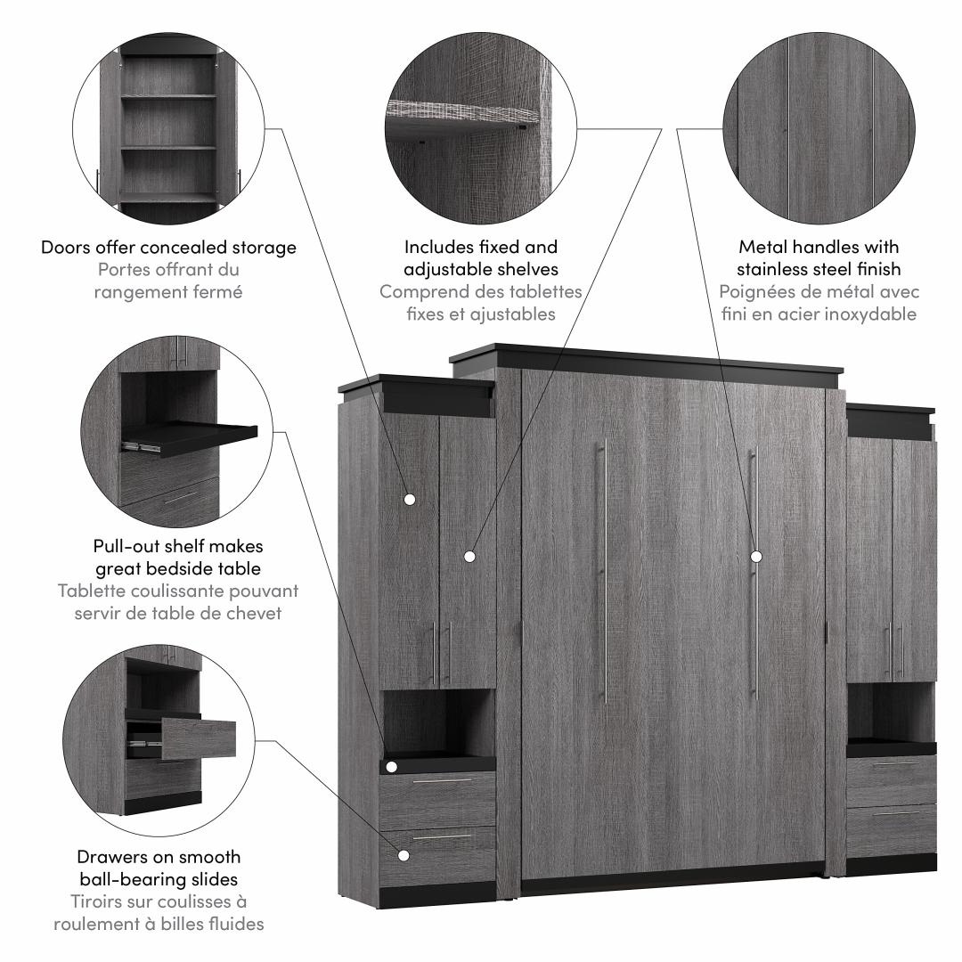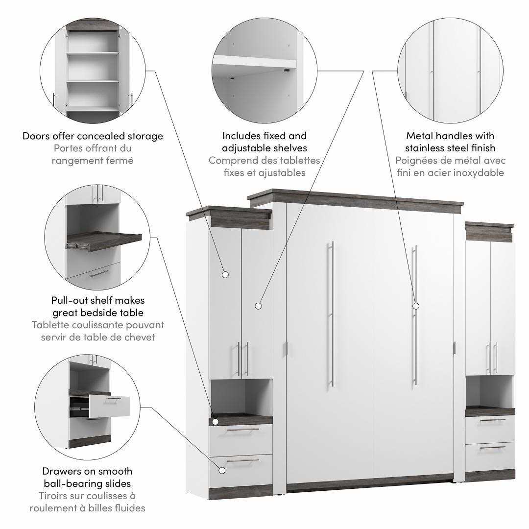 Queen Murphy Bed with Storage Cabinets and Pull-Out Shelves (106W)