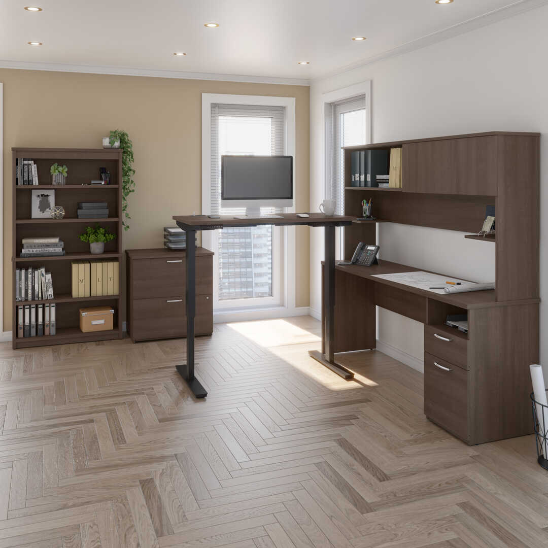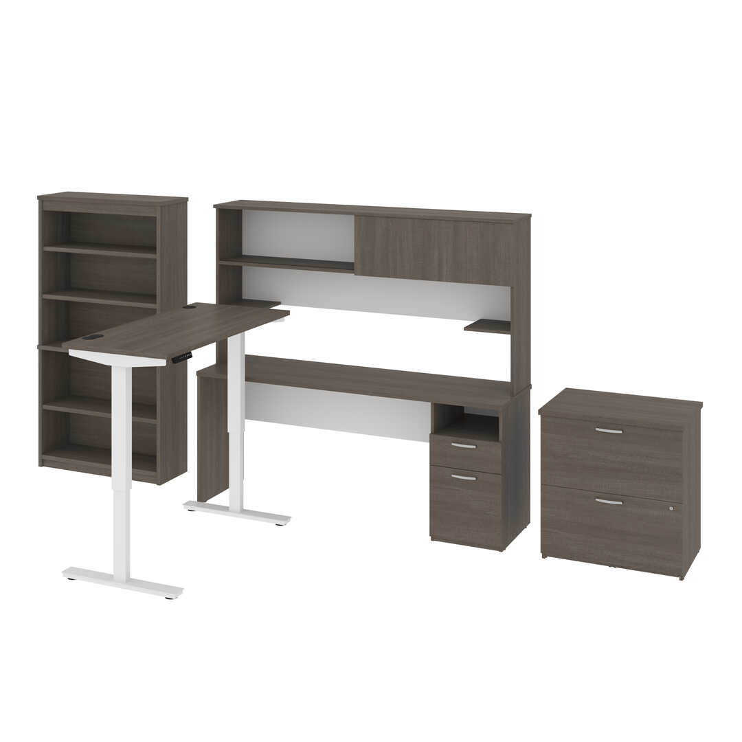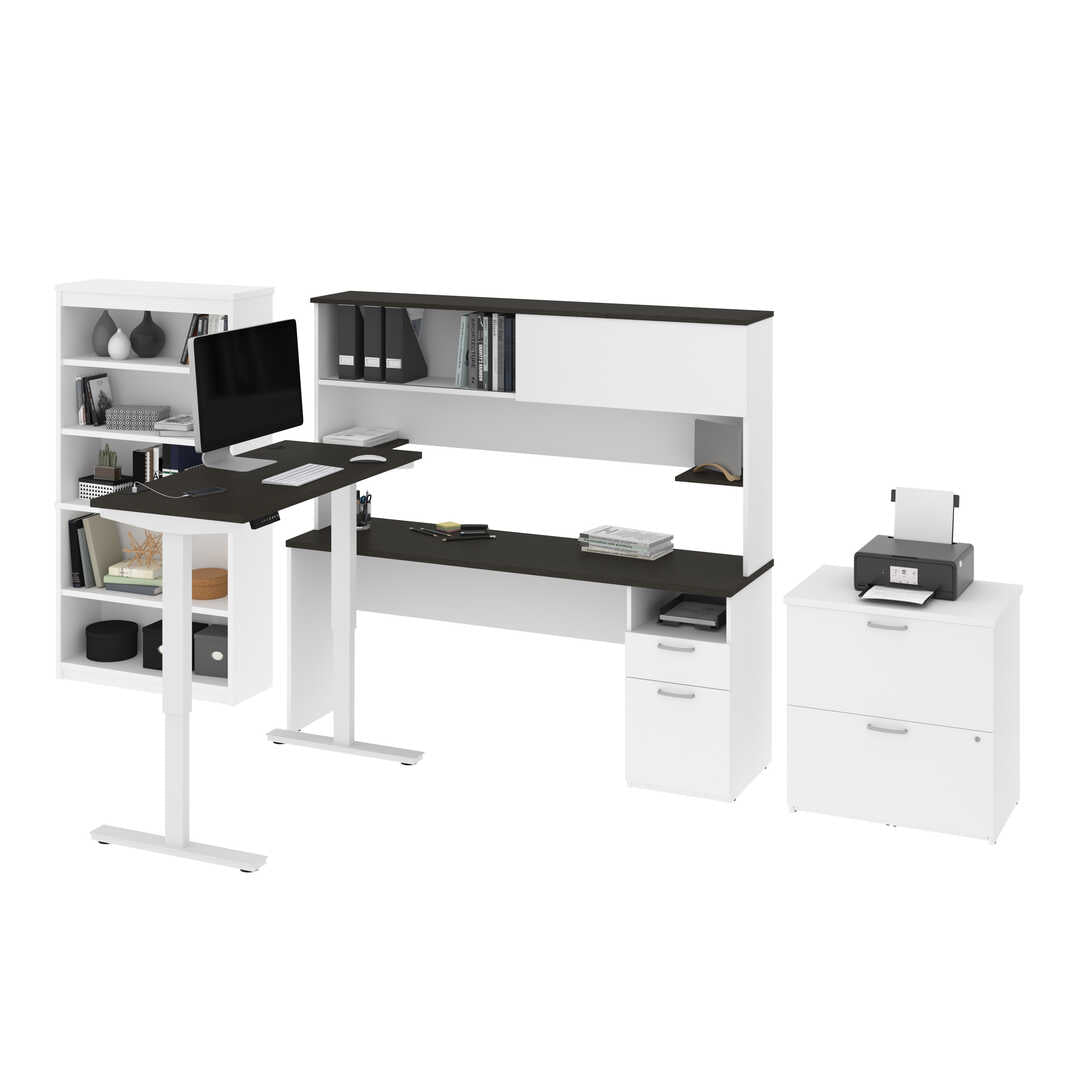 24” x 48” Standing Desk, 1 Credenza with Hutch, 1 Bookcase, and 1 Lateral File Cabinet