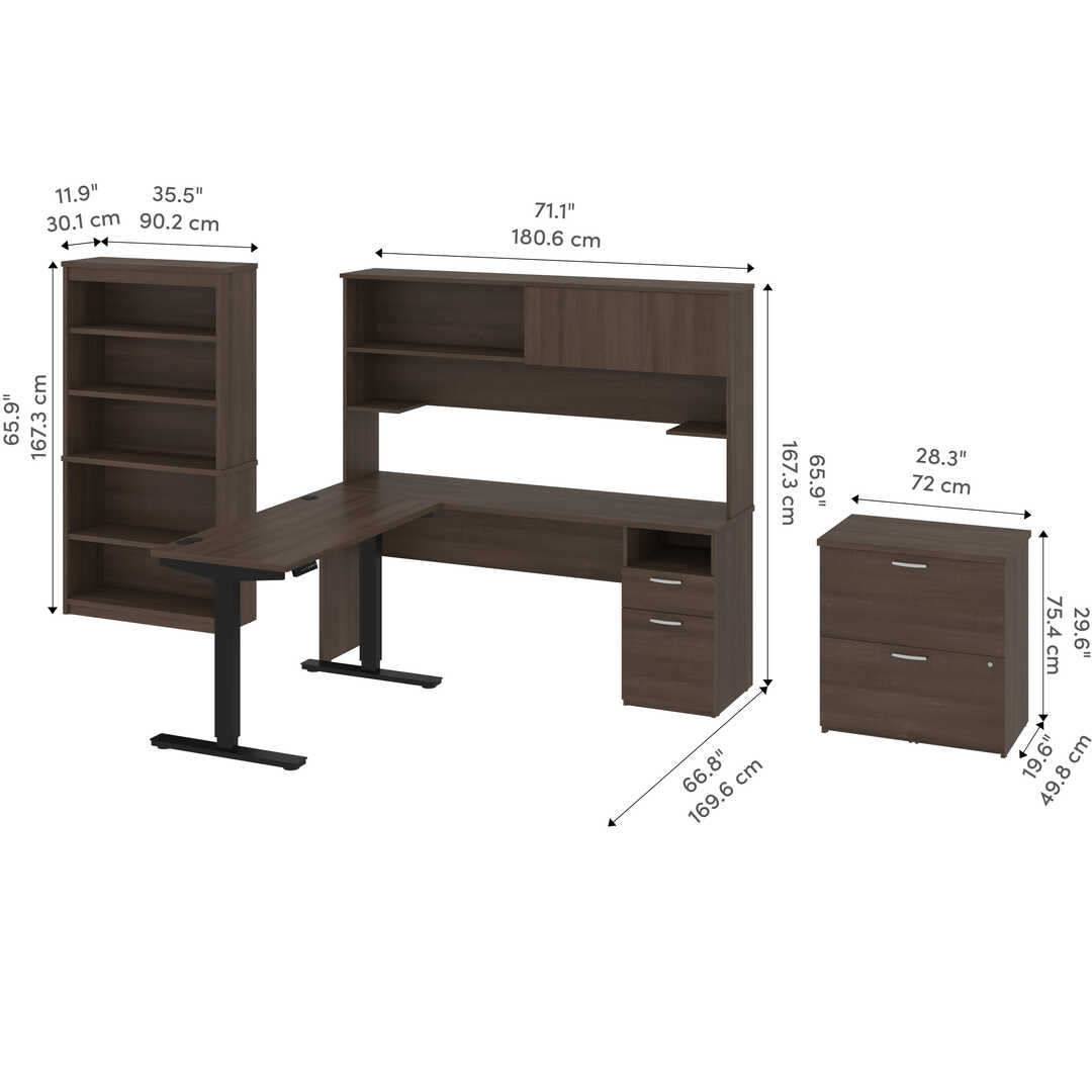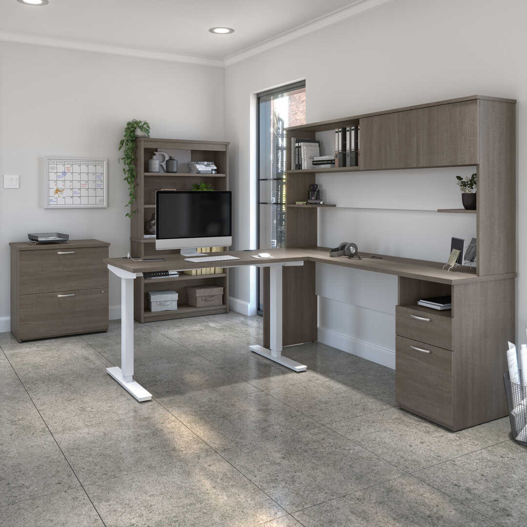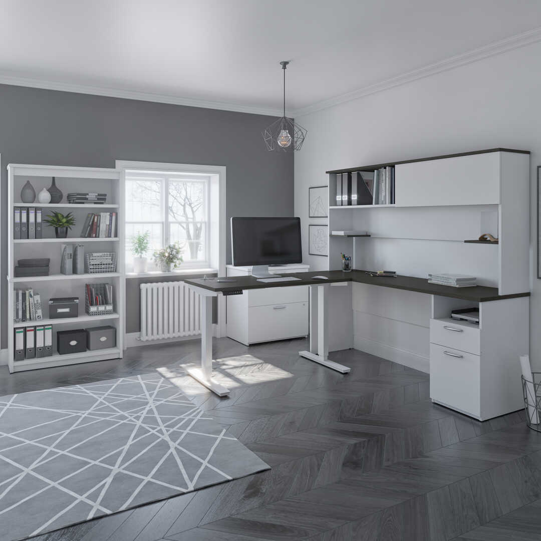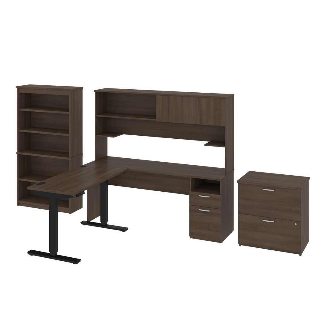 24” x 48” Standing Desk, 1 Credenza with Hutch, 1 Bookcase, and 1 Lateral File Cabinet