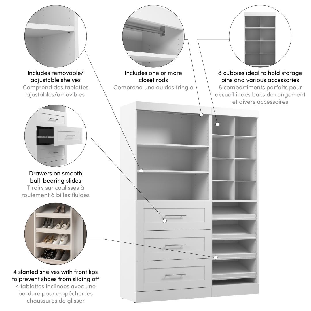 Contemporary Closet System with Drawers, Clothing Rods, Shoe Racks & Cubbies, 61W x 19D